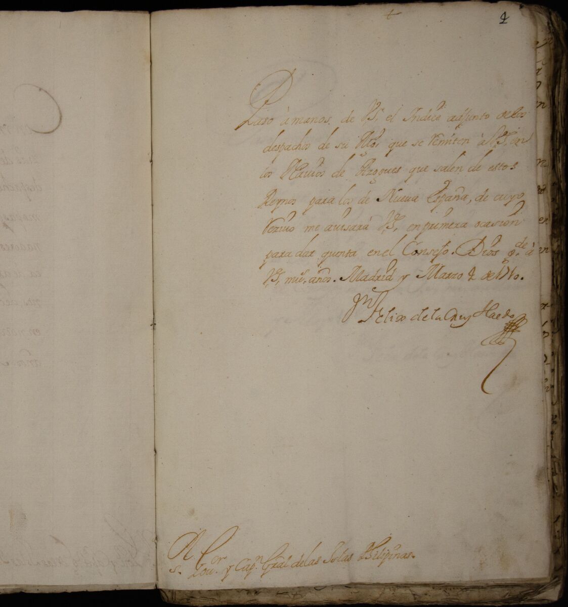 - en His Majesty's Dispatches to the President of the Audiencia of the Philippines, 1707-1713.