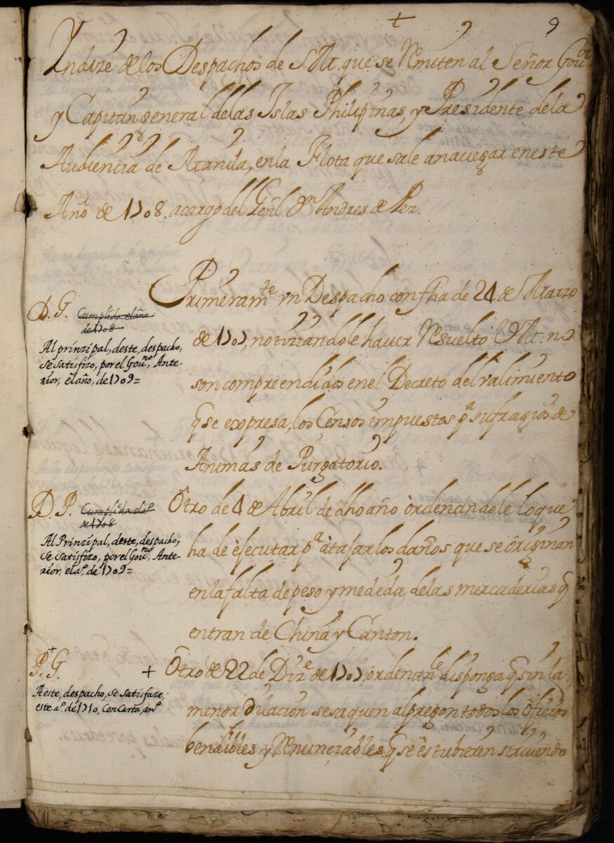 - Despachos de Su Majestad al Presidente de la Audiencia de Filipinas, 1707-1713.