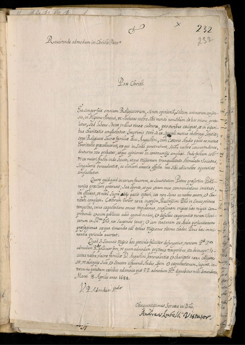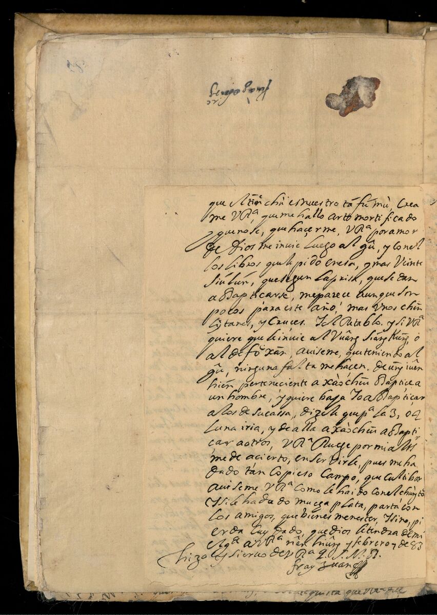 Carta de Fray Juan Nicolás de Rivera a Fray Álvaro de Benavente, Nan-hiung, 7 de febrero de 1683
