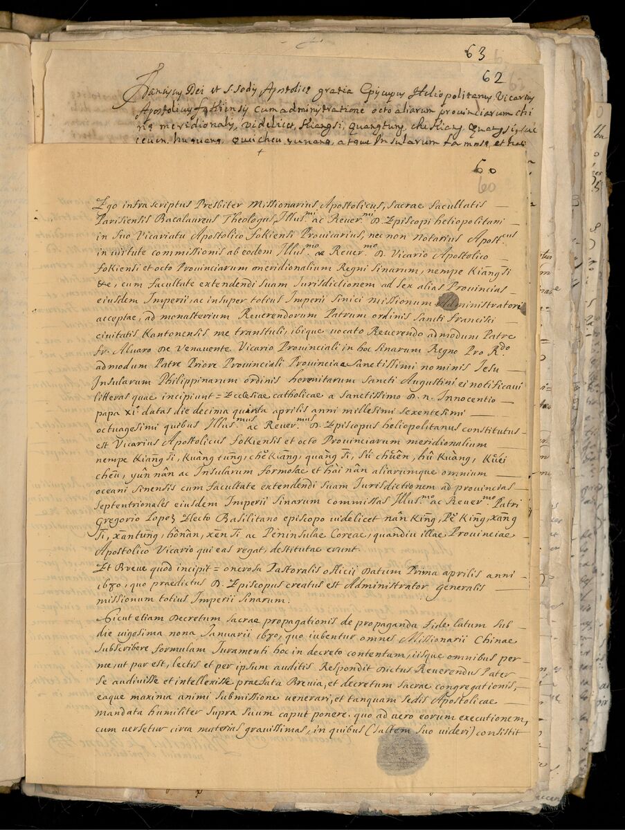 Auto en Latín del Obispo de Heliopolis, de Amoy, 17 de enero de 1684