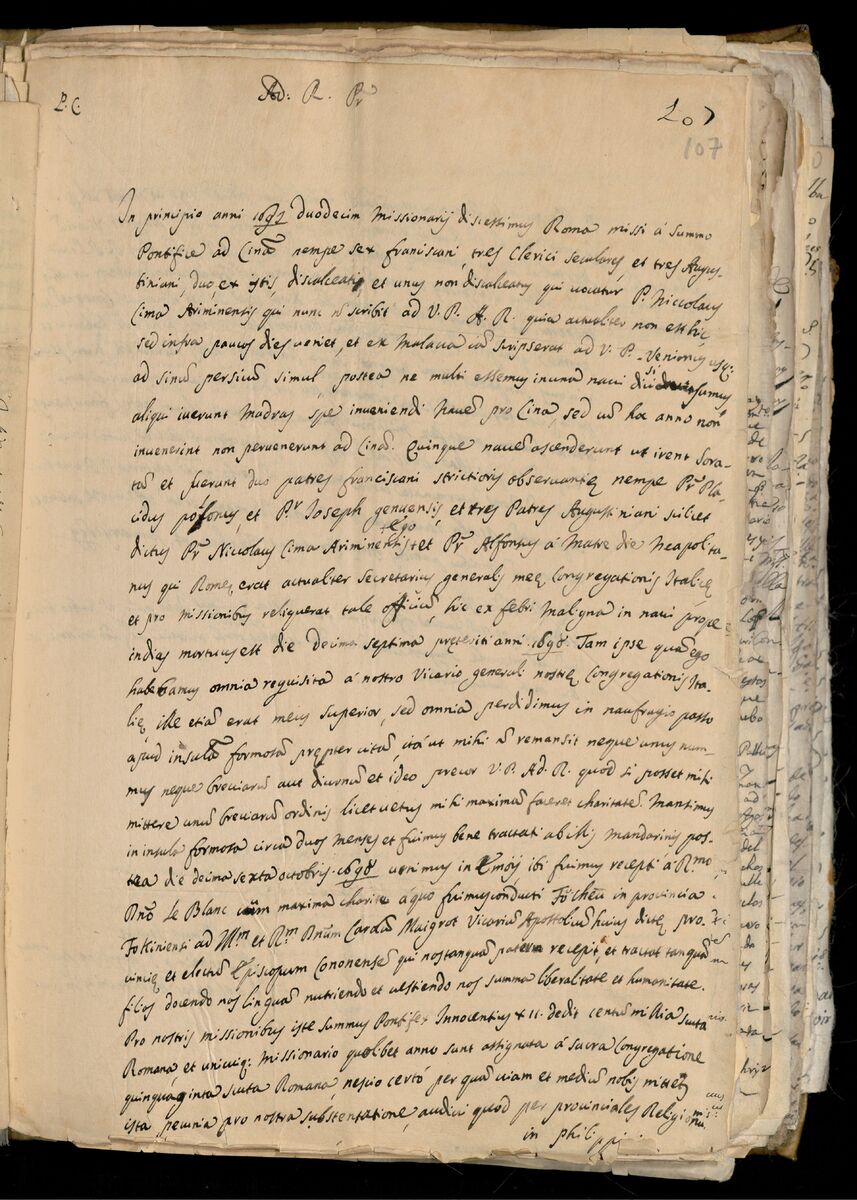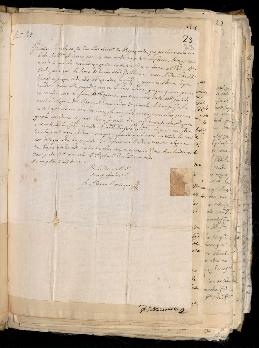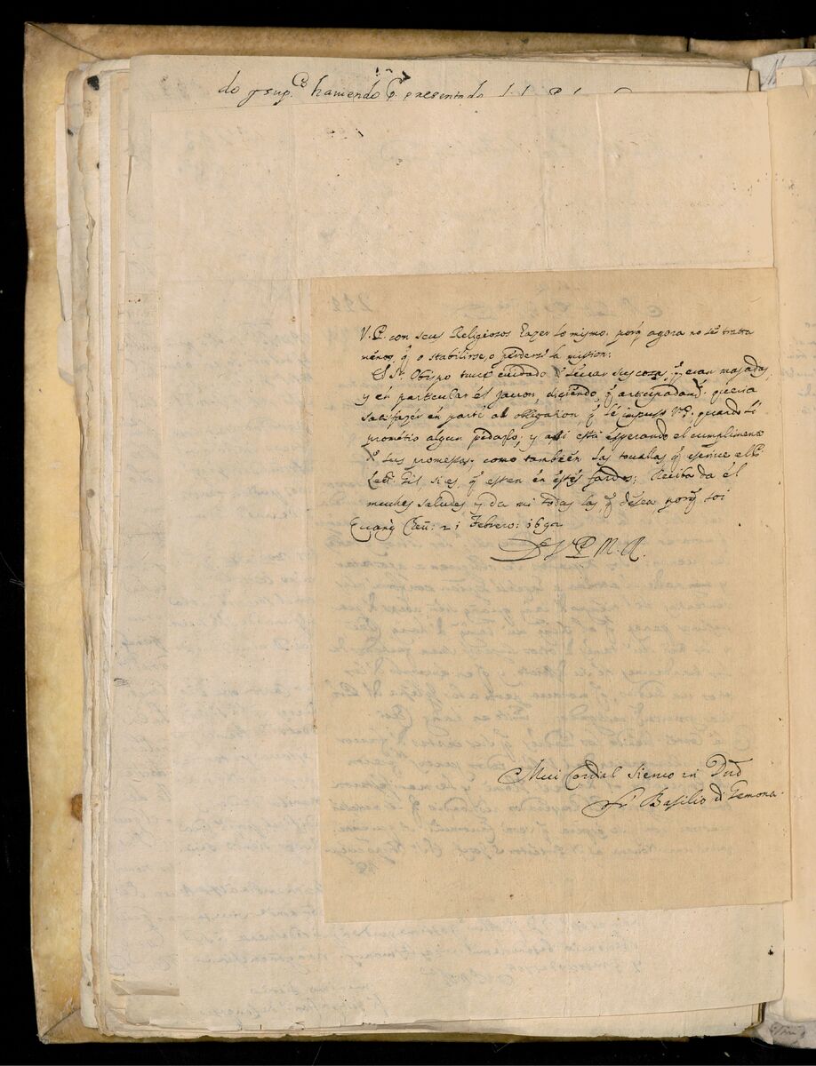 Carta de Fray Bernardino della Chiesa de Cantón, 27 de marzo de 1691