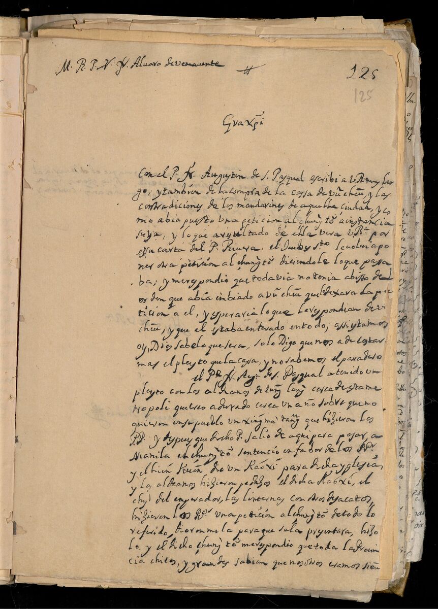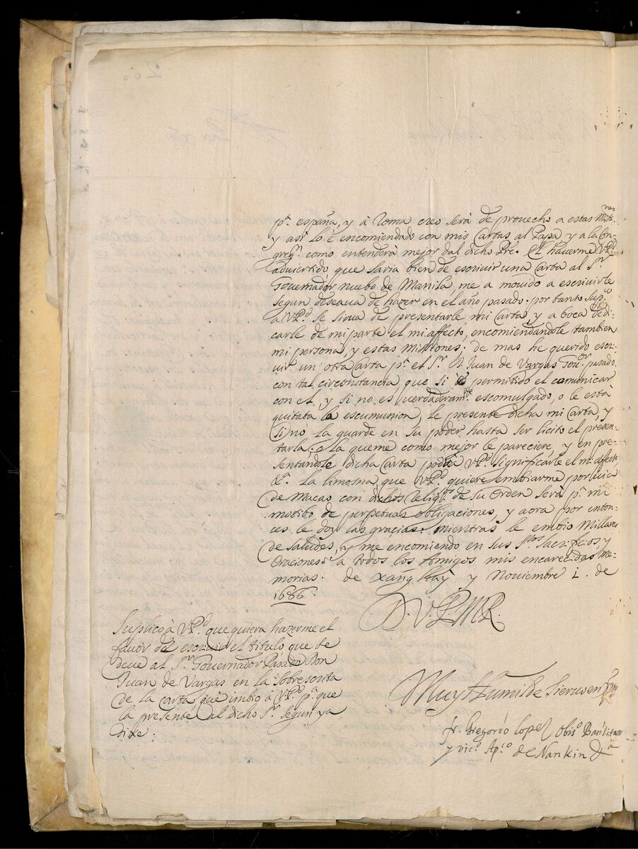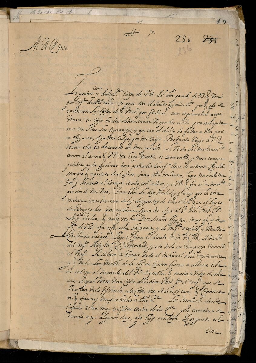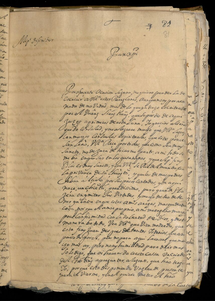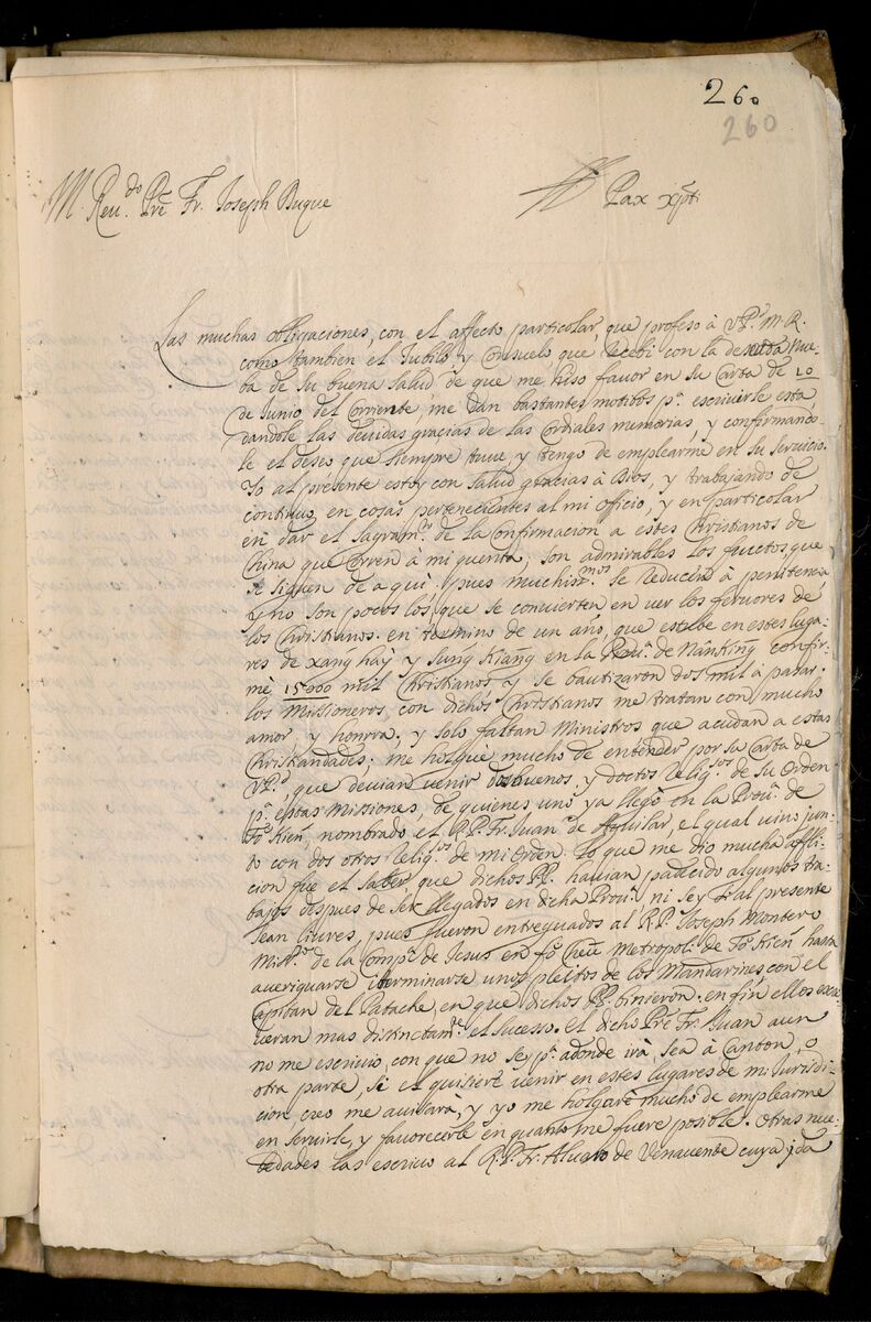 Carta de Fray Juan Nicolás de Rivera a Fray Álvaro de Benavente, Xao-King-fu, 30 de noviembre de 1696