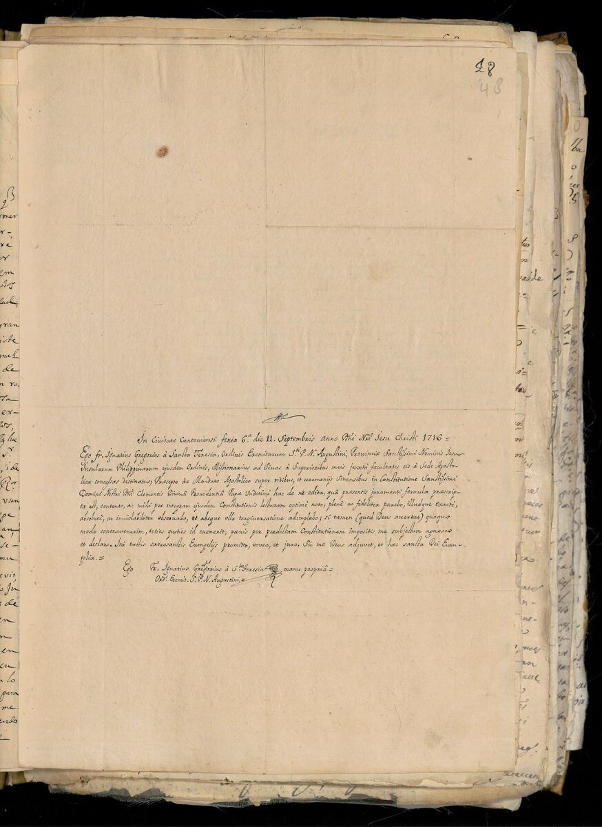 Juramento de Fray Ignacio de Santa Teresa en Cantón, 11 de september de 1716.