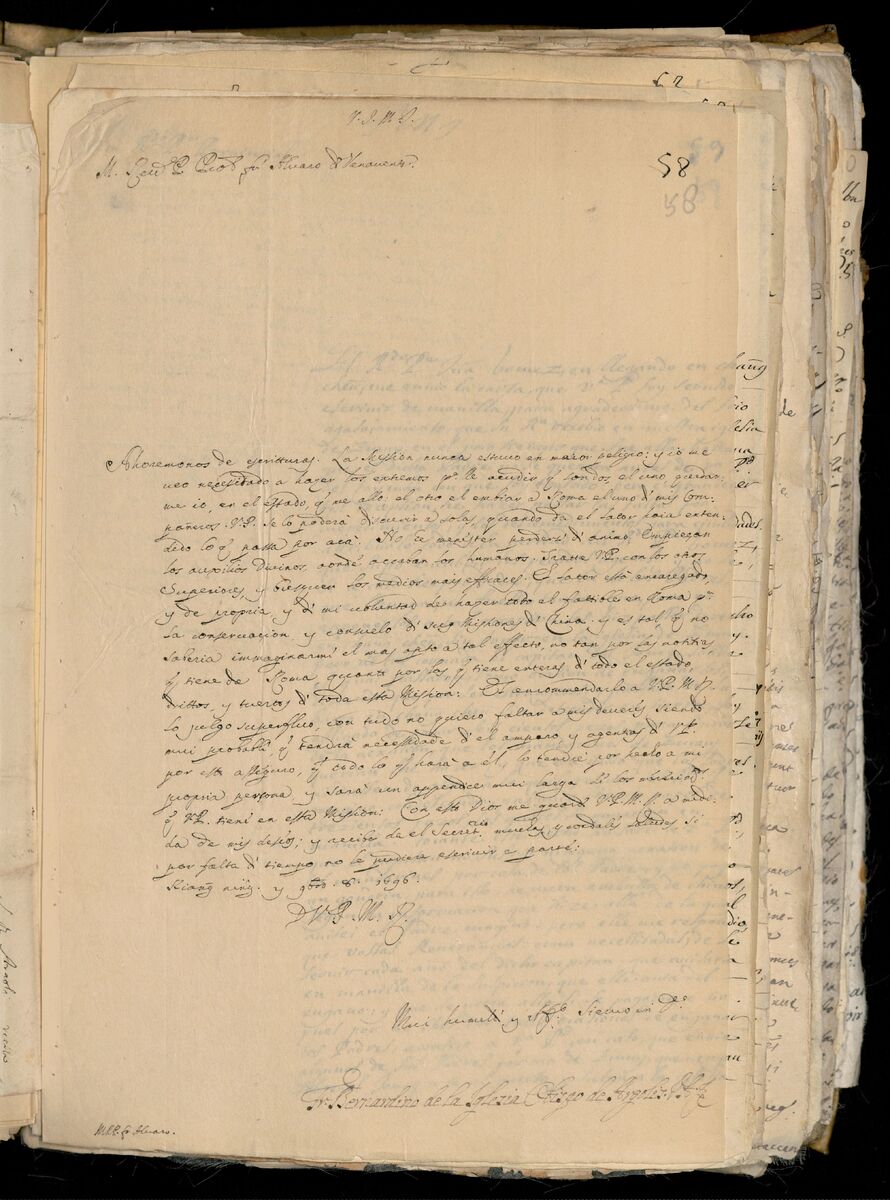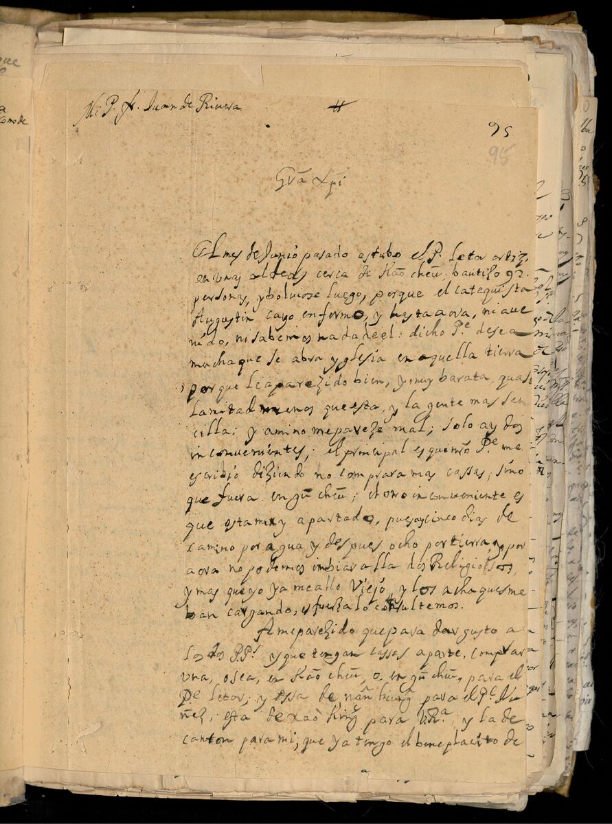 Carta de Fray Juan Nicolás de Rivera a Fray Miguel Rubio, Sin-chuen, 20 de enero de 1696