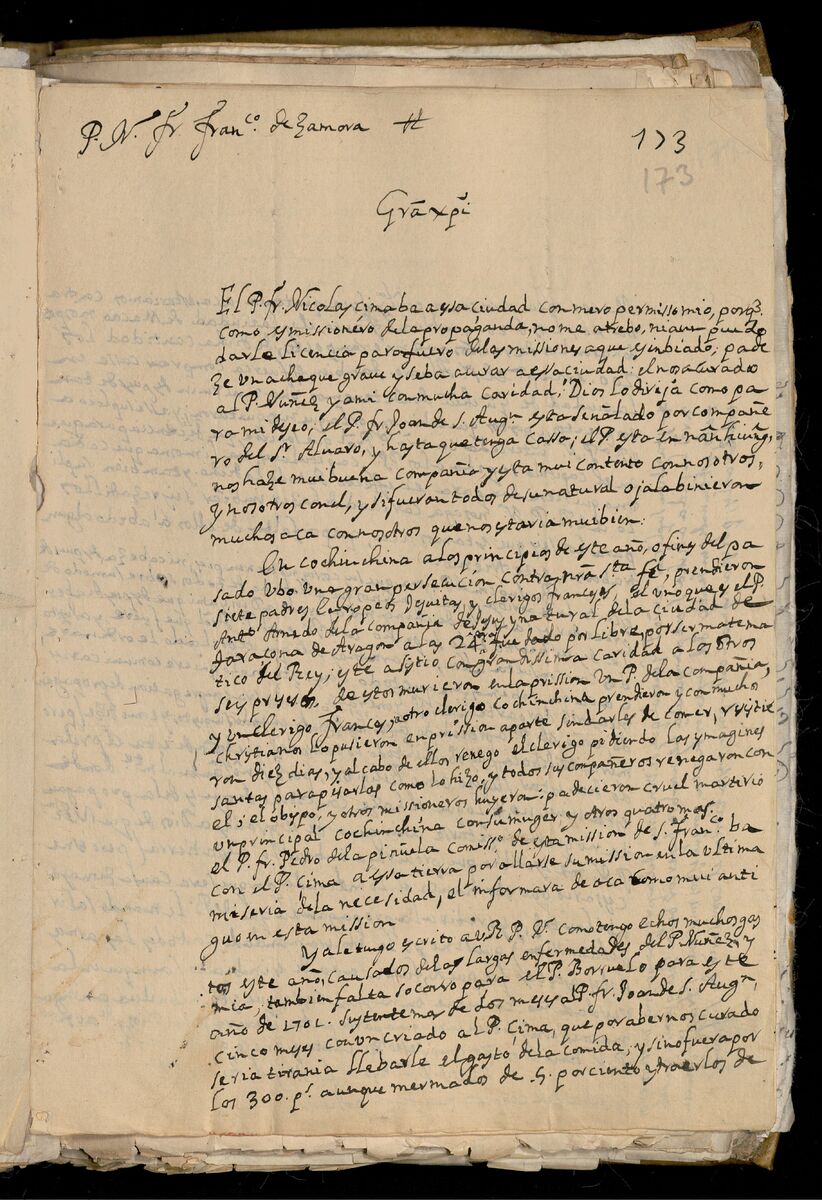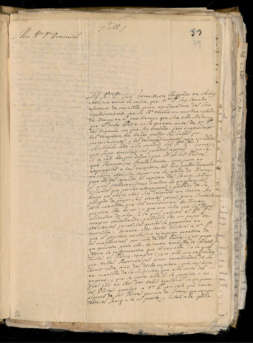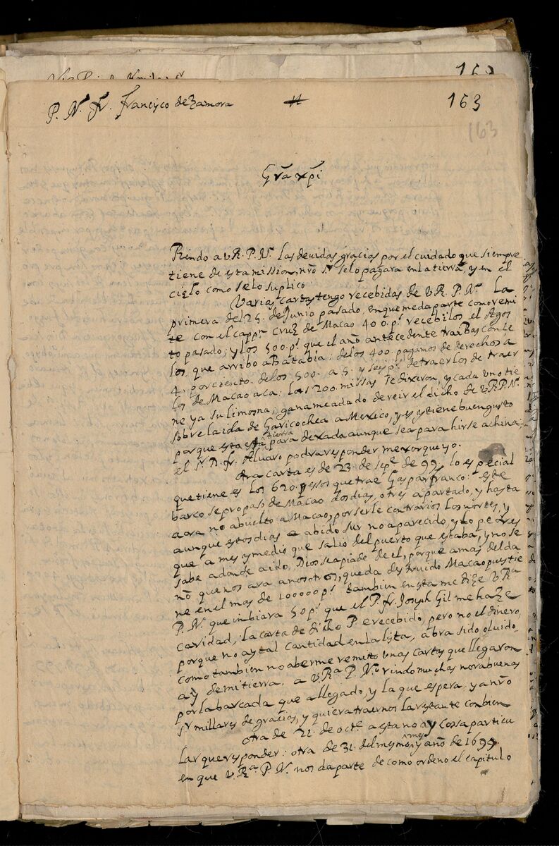 Carta de Fray Juan Nicolás de Rivera a Fray Francisco de Zamora, Xi-hing, 9 de febrero de 1699