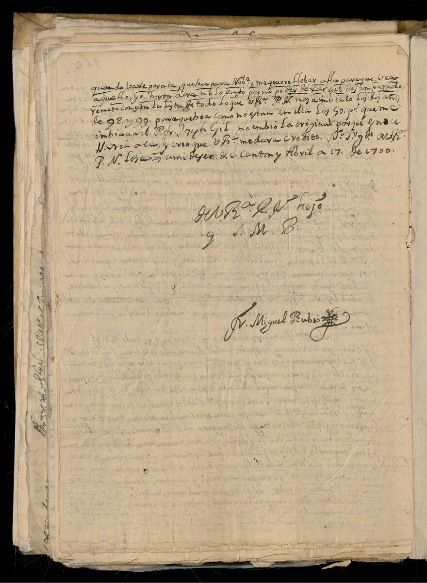 Carta de Fray Miguel Rubio al General de la Orden de San Agustín, Cantón, 15 de abril de 1699