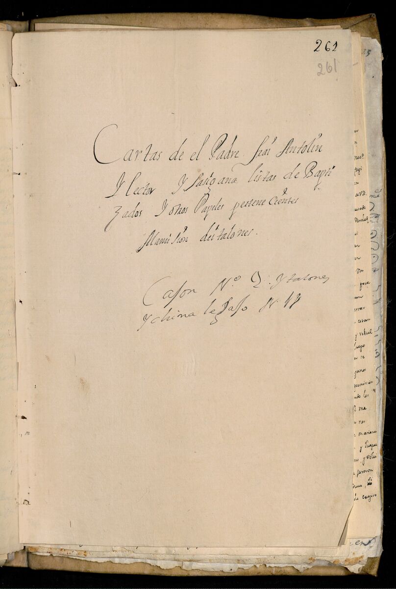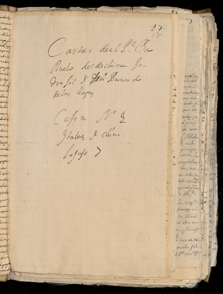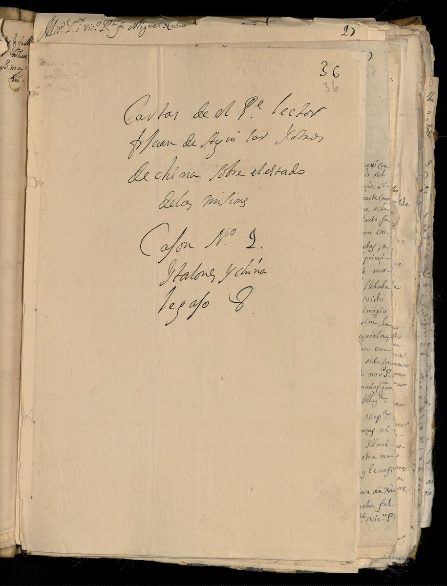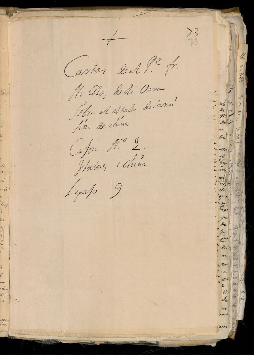 Carátula de las cartas del Padre Fray Nicolás de Rivera, sobre el estado de la misión de China. Cajón número 4, Italones y China. Legajo 9.