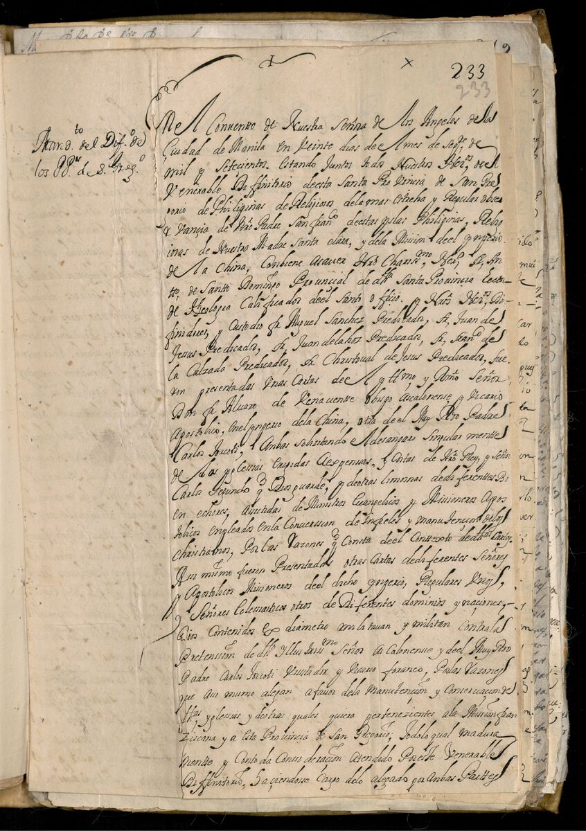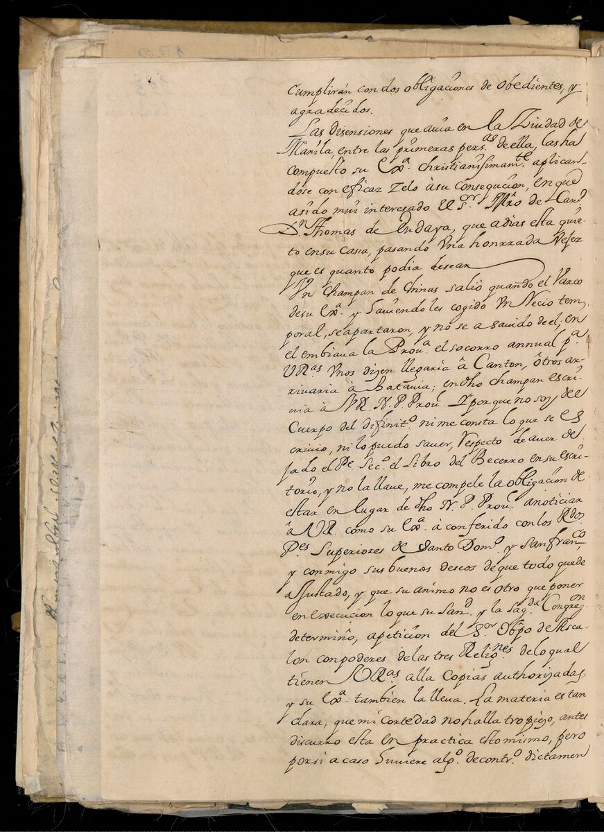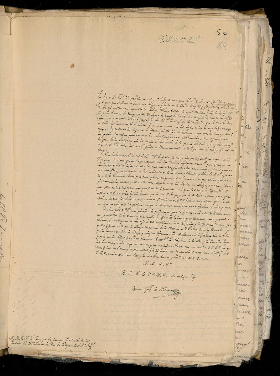 Carta de Fray Ignacio de Santa Teresa al Padre Provincial at Manila de Cantón, el 27 de abril de 1709