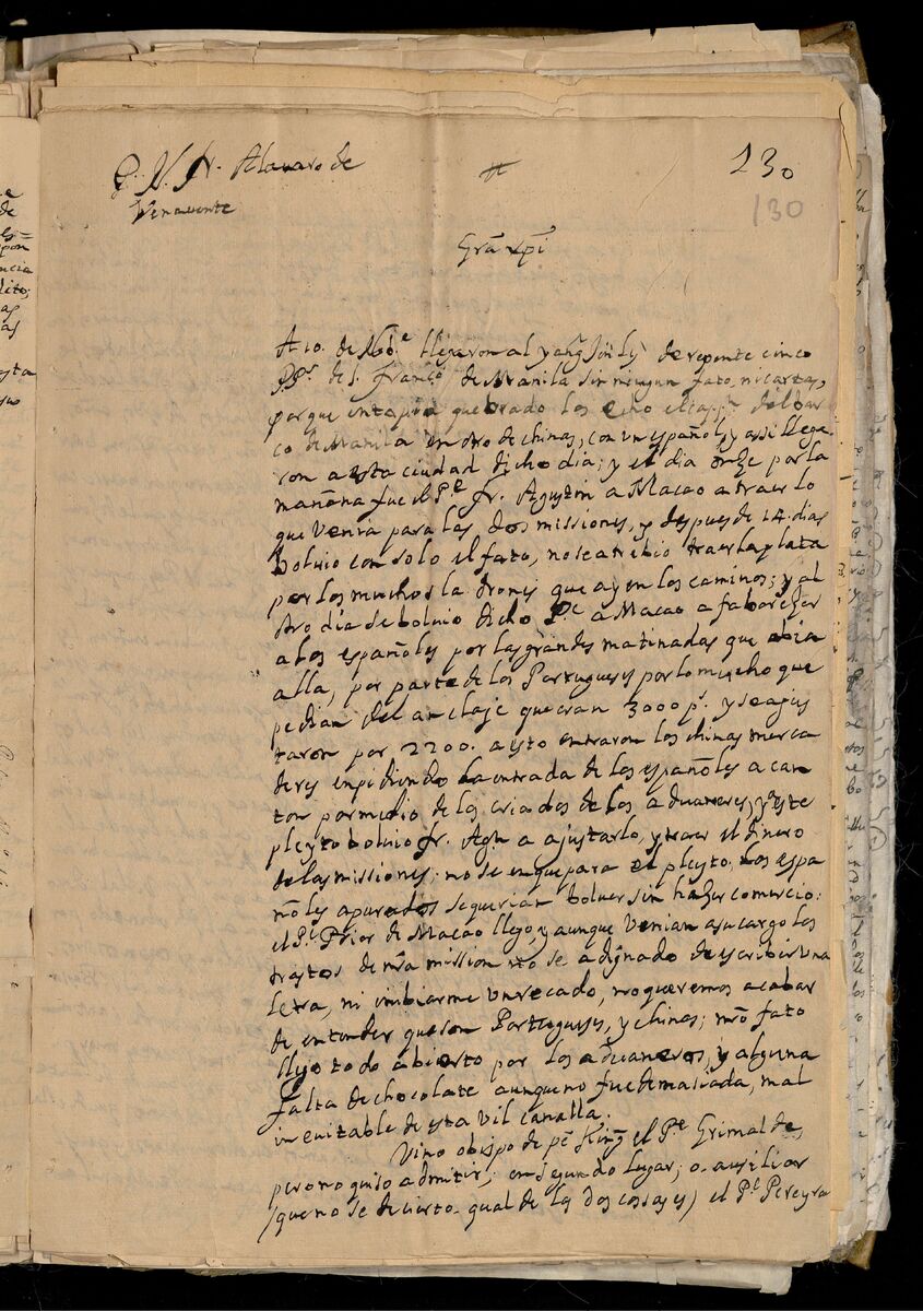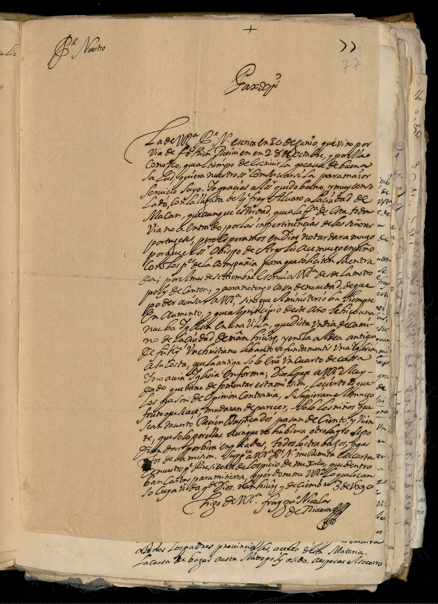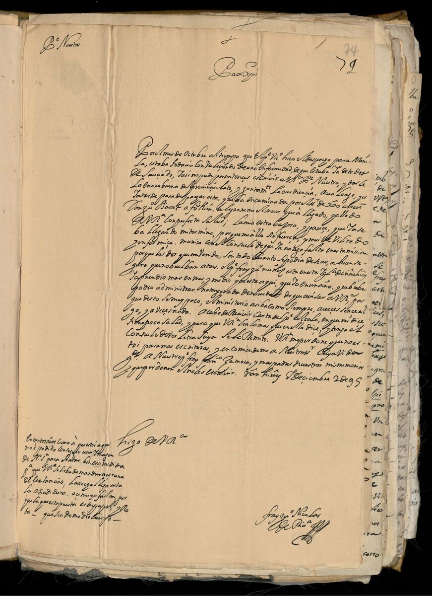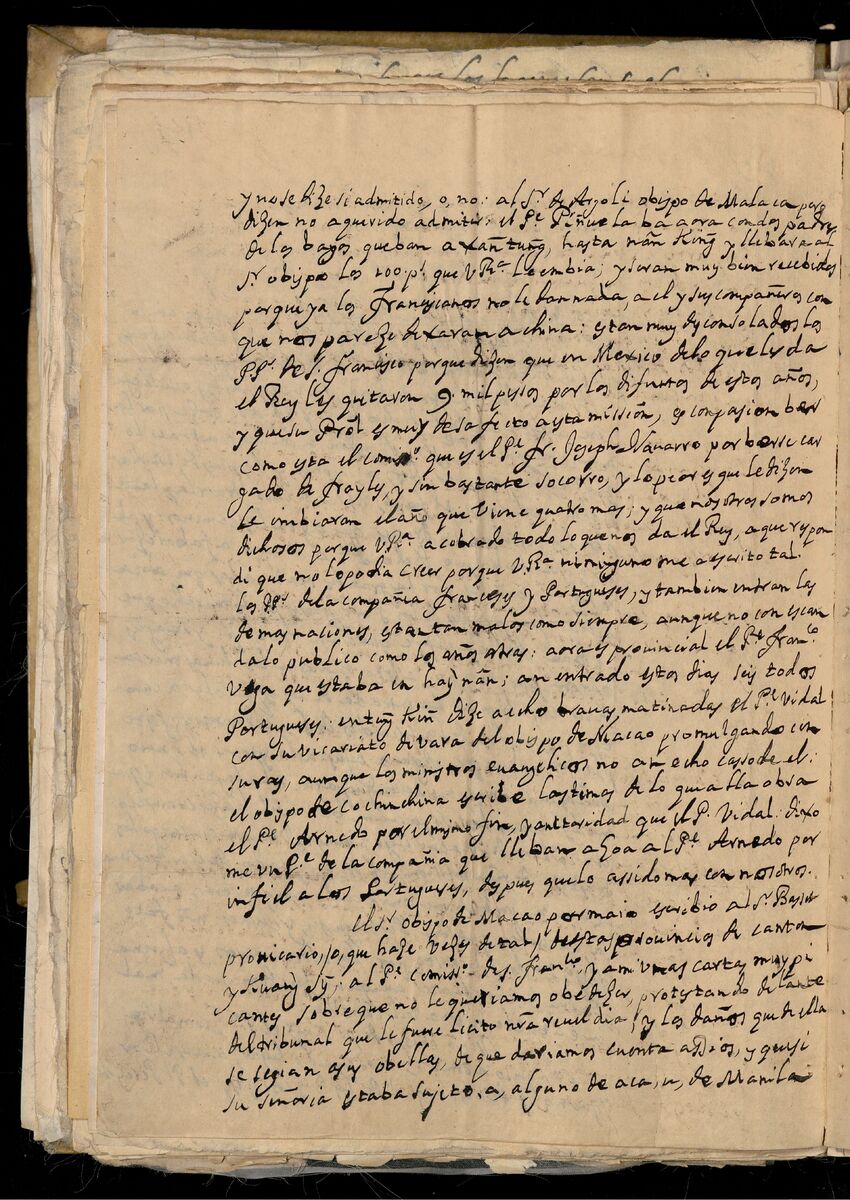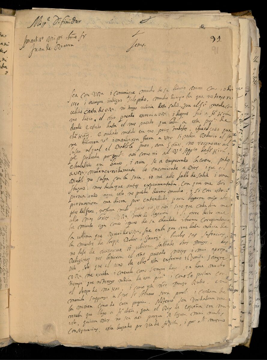 Carta incompleta de Fray Juan Nicolas de Rivera