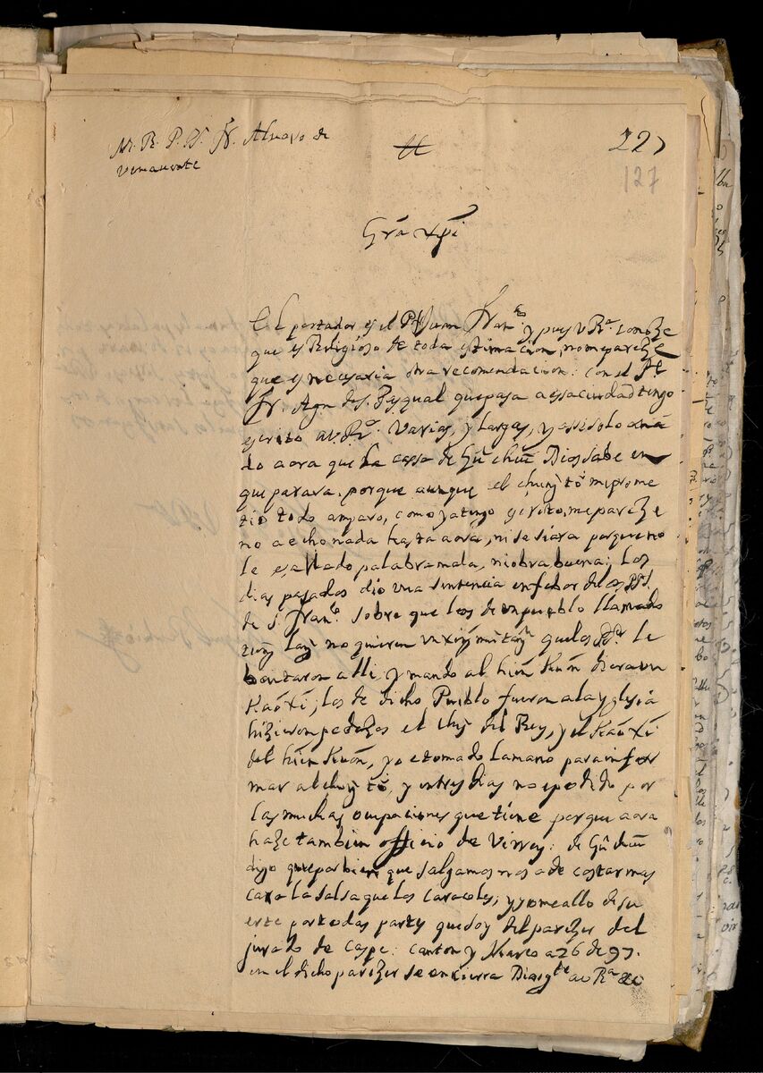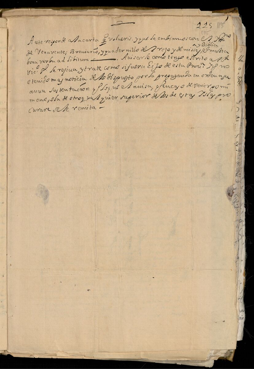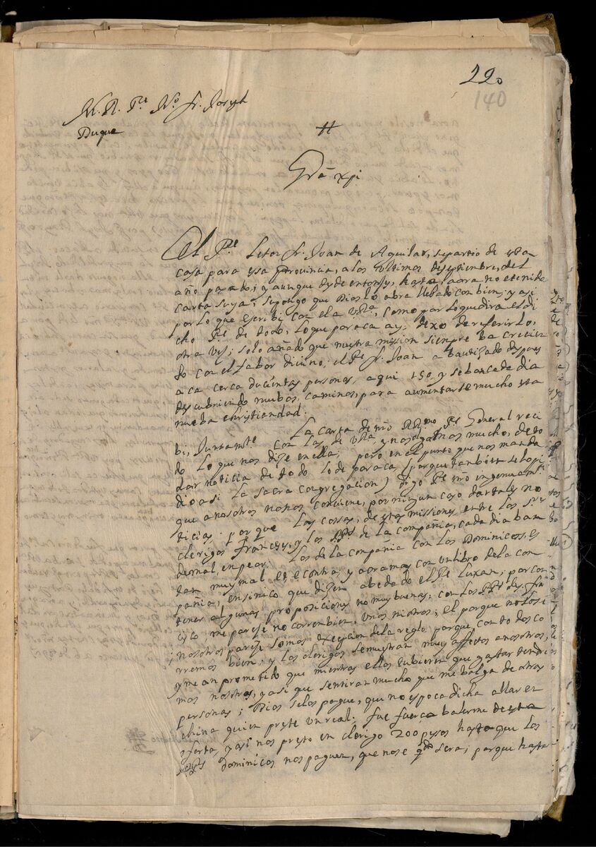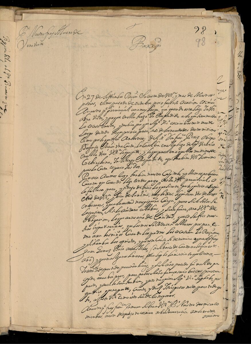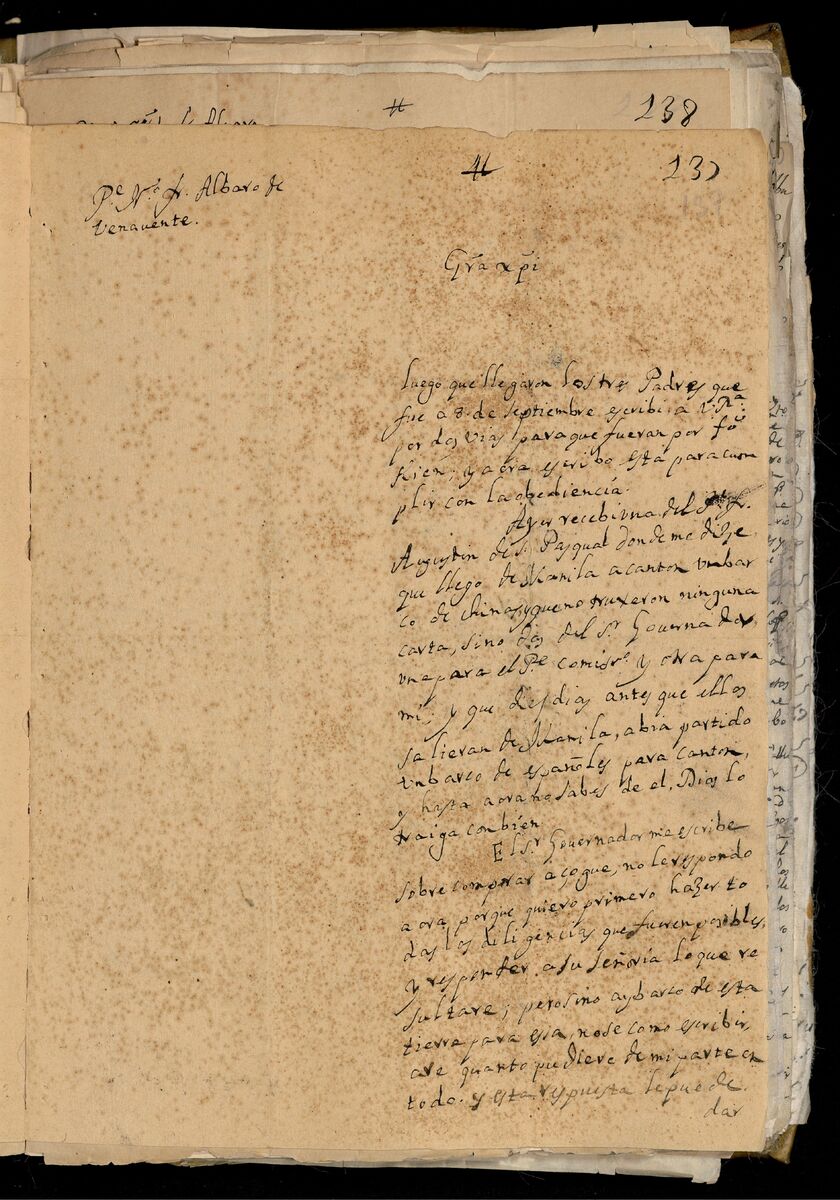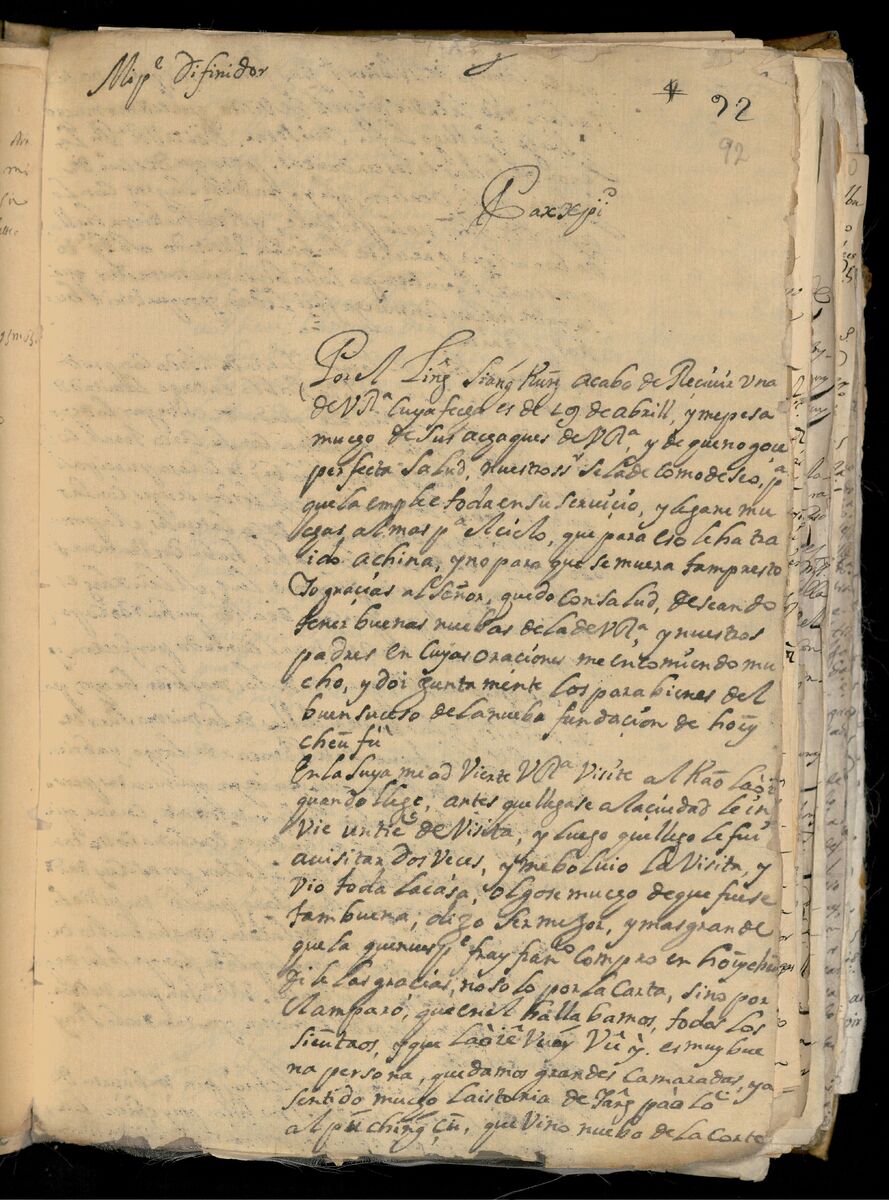 Carta incompleta de Fray Juan Nicolas de Rivera