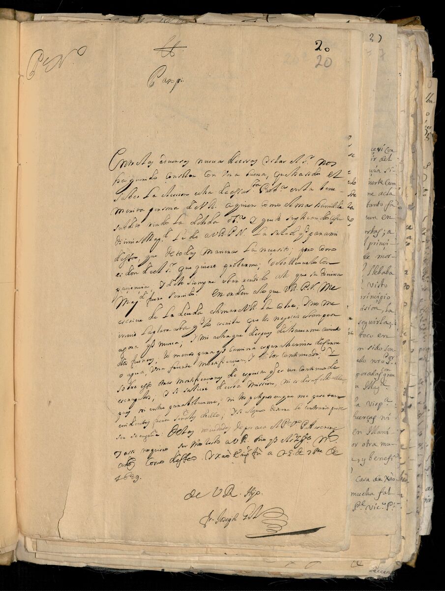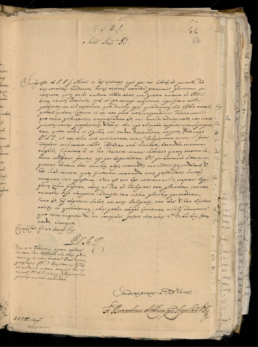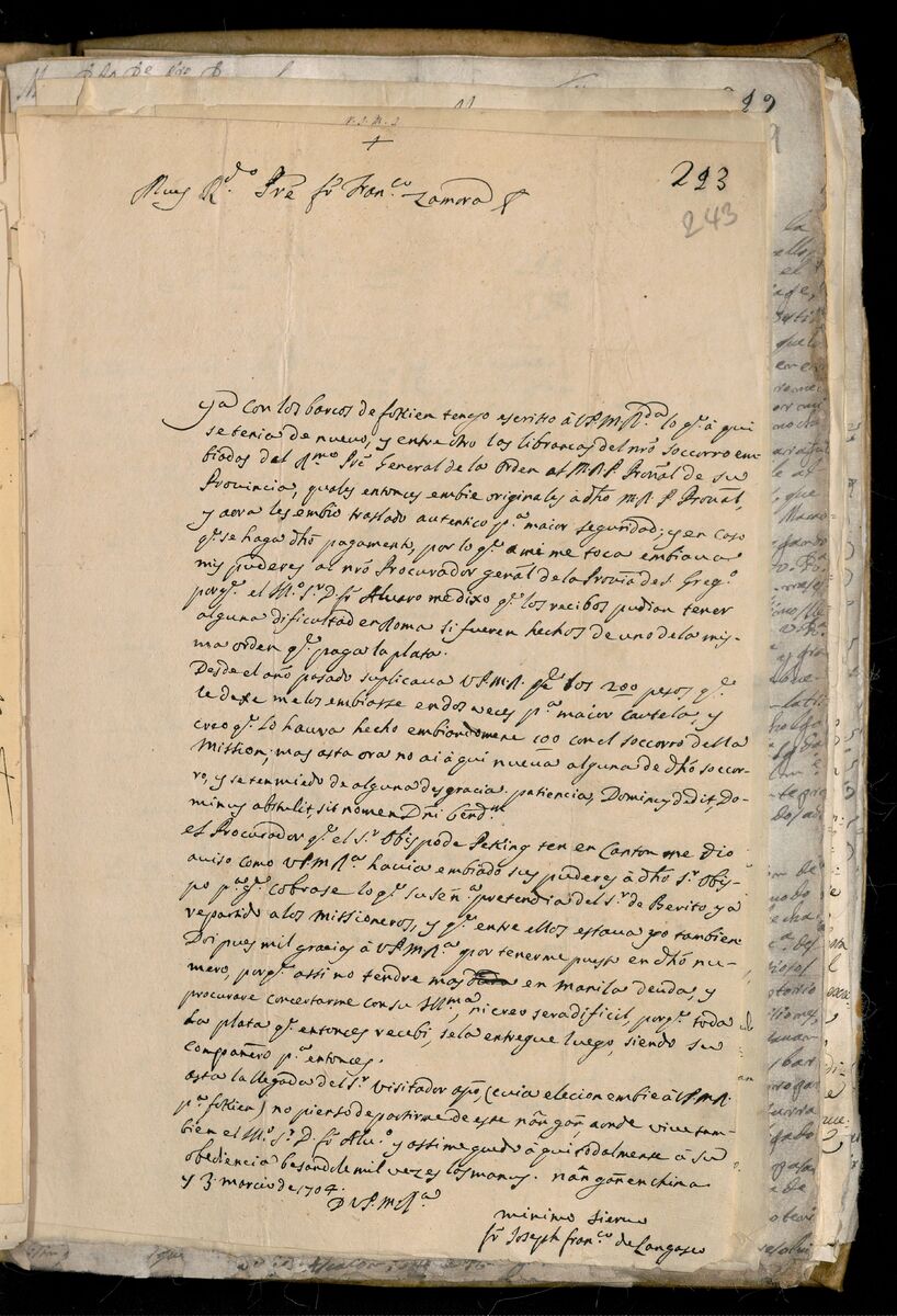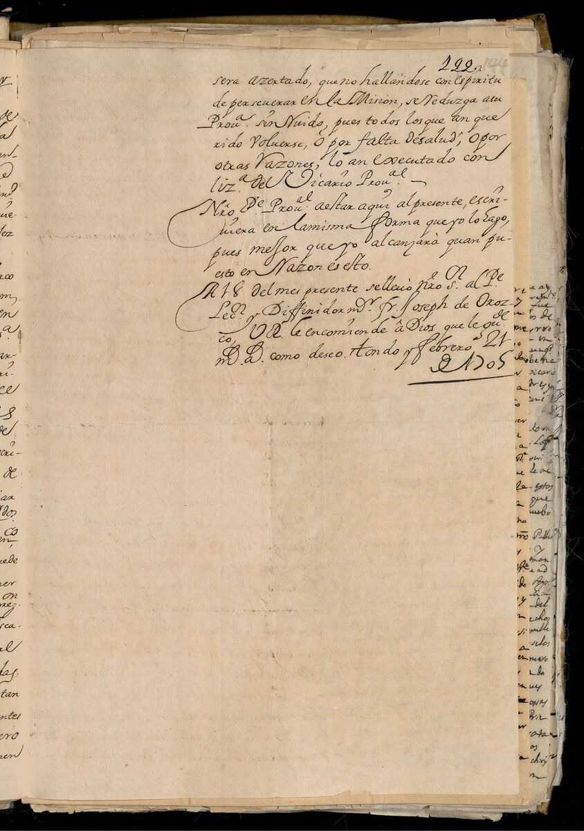 Carta de Fray Bernardino de las Llagas a Fray Francisco de Zamora, de Cantón, 20 February 1706.