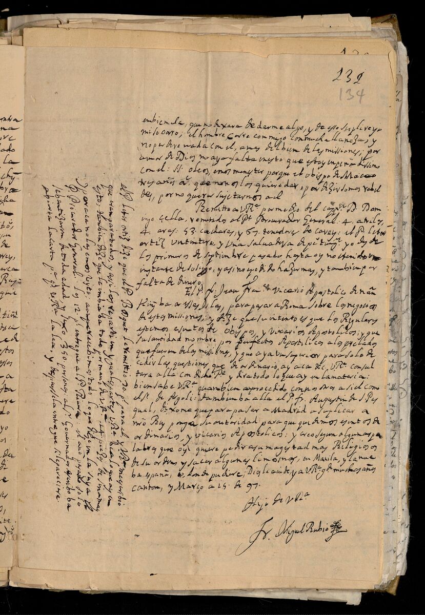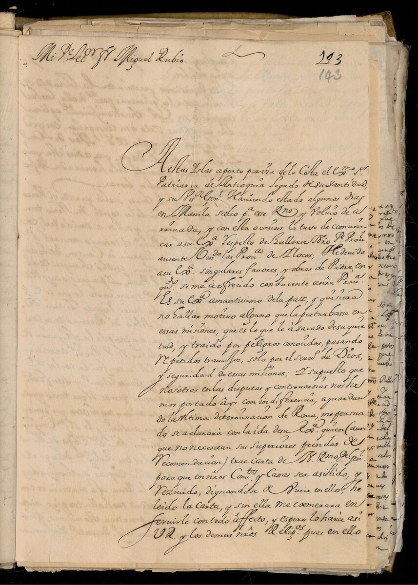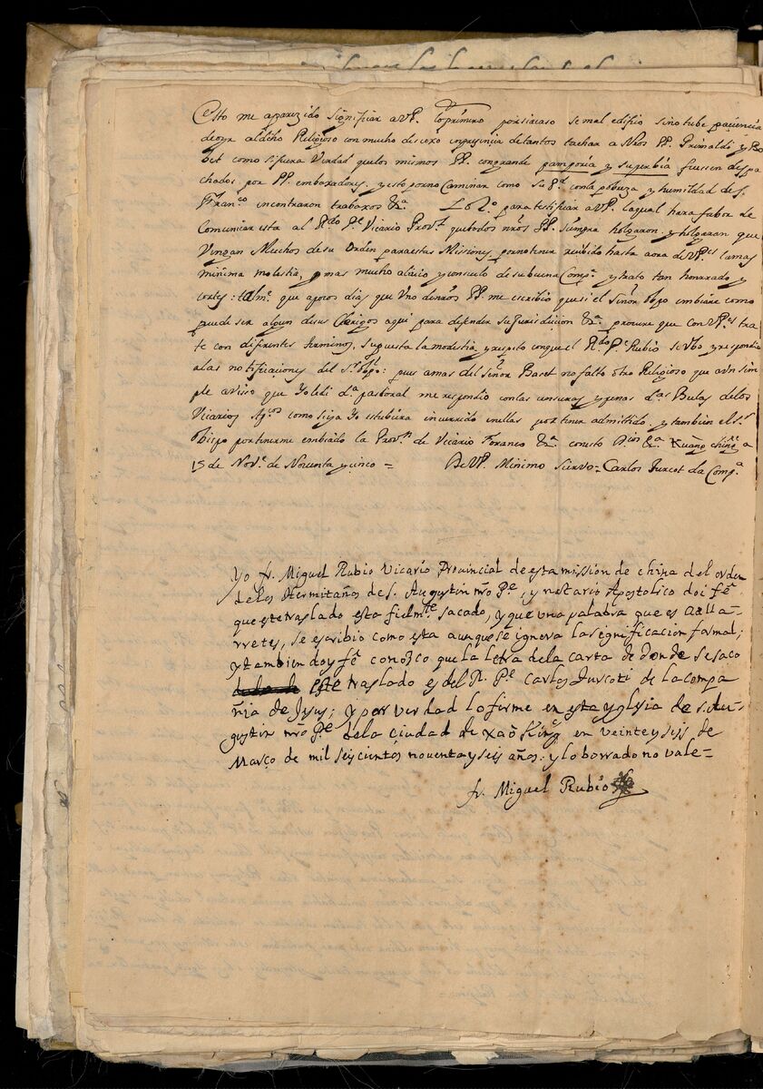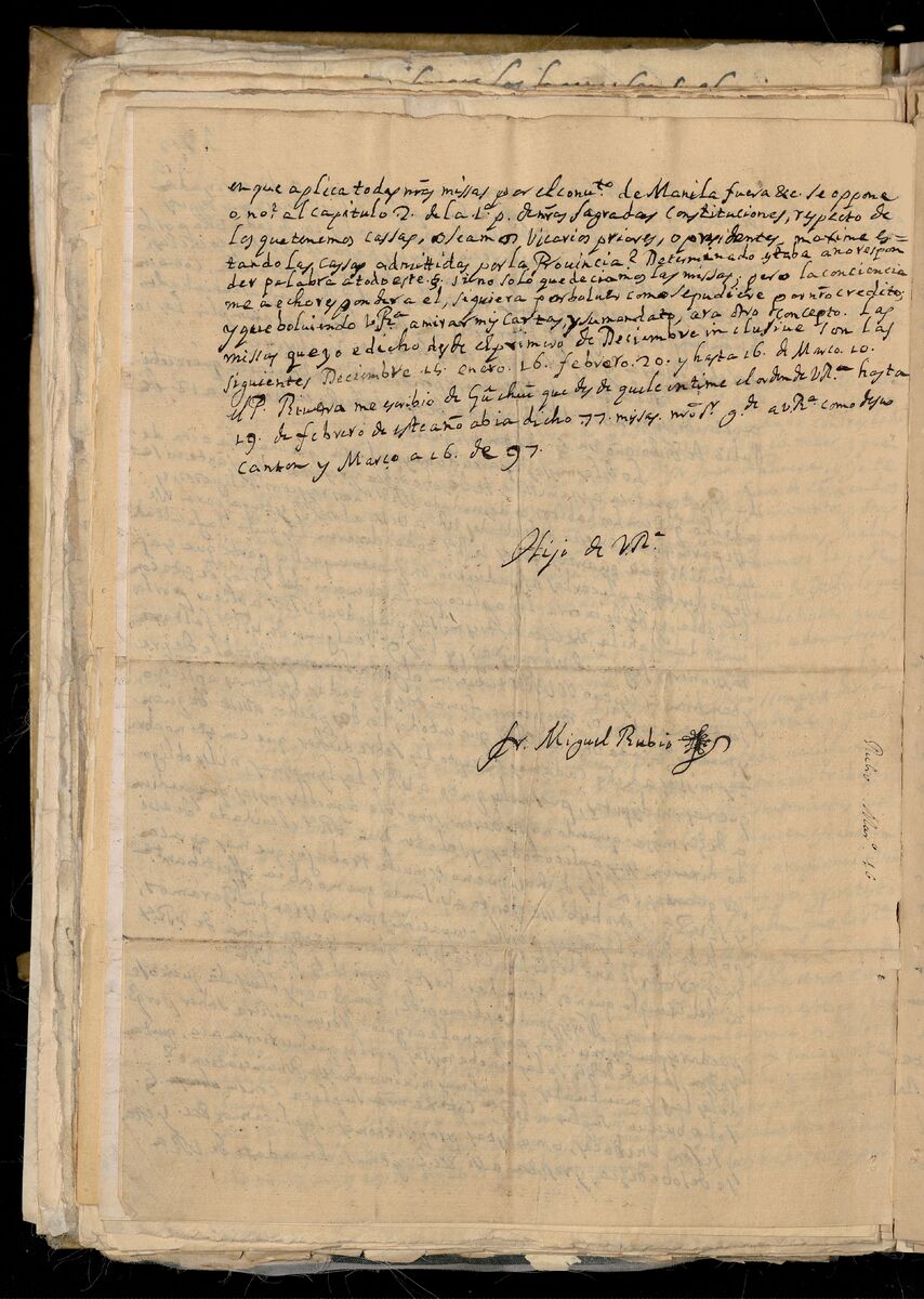 Carta de Fray Juan Nicolás de Rivera a Fray Miguel Rubio, Vu-chin-fu, 29 de marzo de 1697