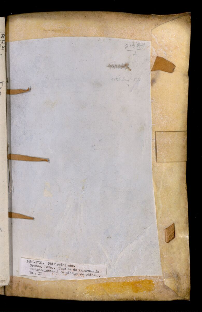 - en Vol. 2. Orense, Pedro. "Papers of importance belonging to the mission of China. Whose content was found in the list that is placed at the end.", 1645-1721