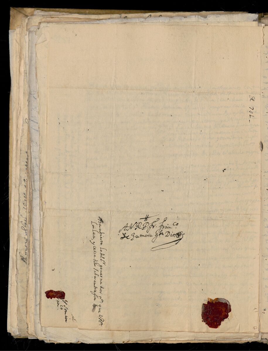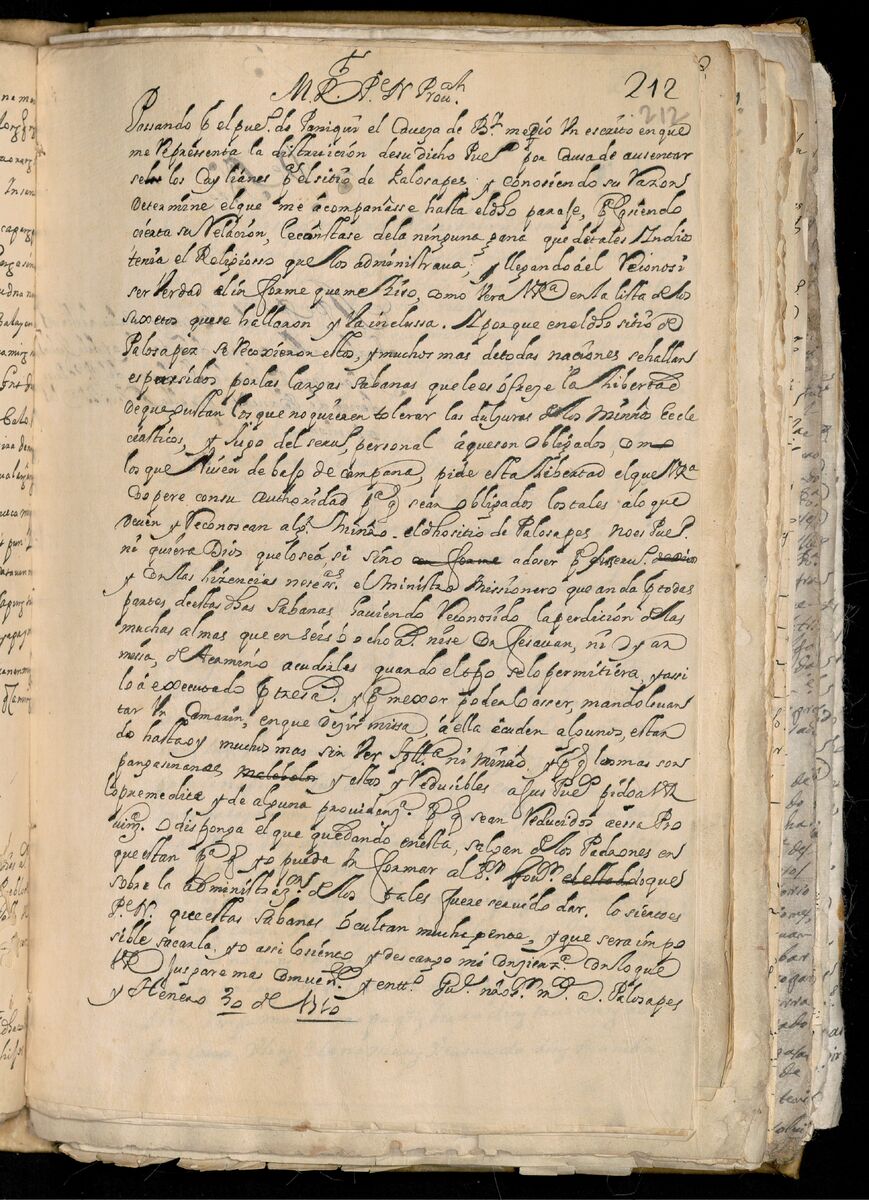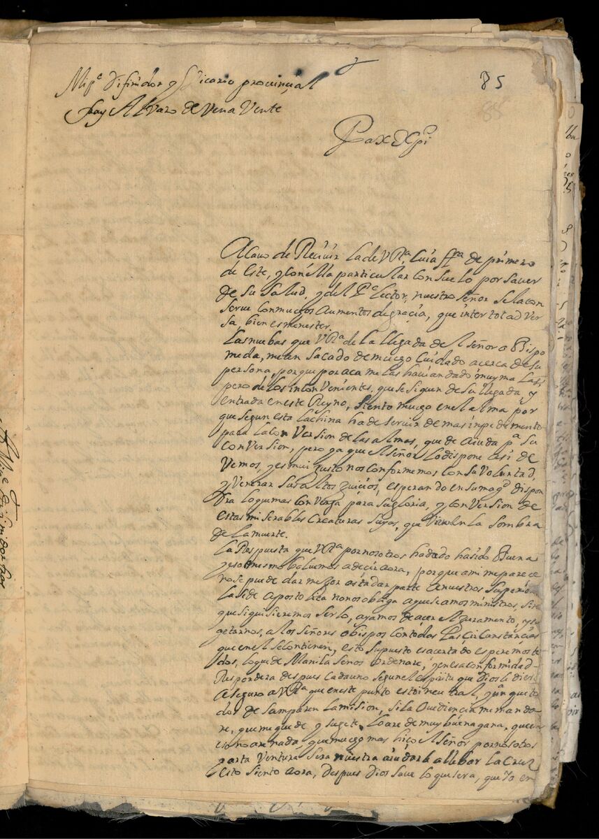 Carta de Fray Bernardino de las Llagas a Fray Juan Baptista de Olarte de Cantón, 24 de abril de 1708