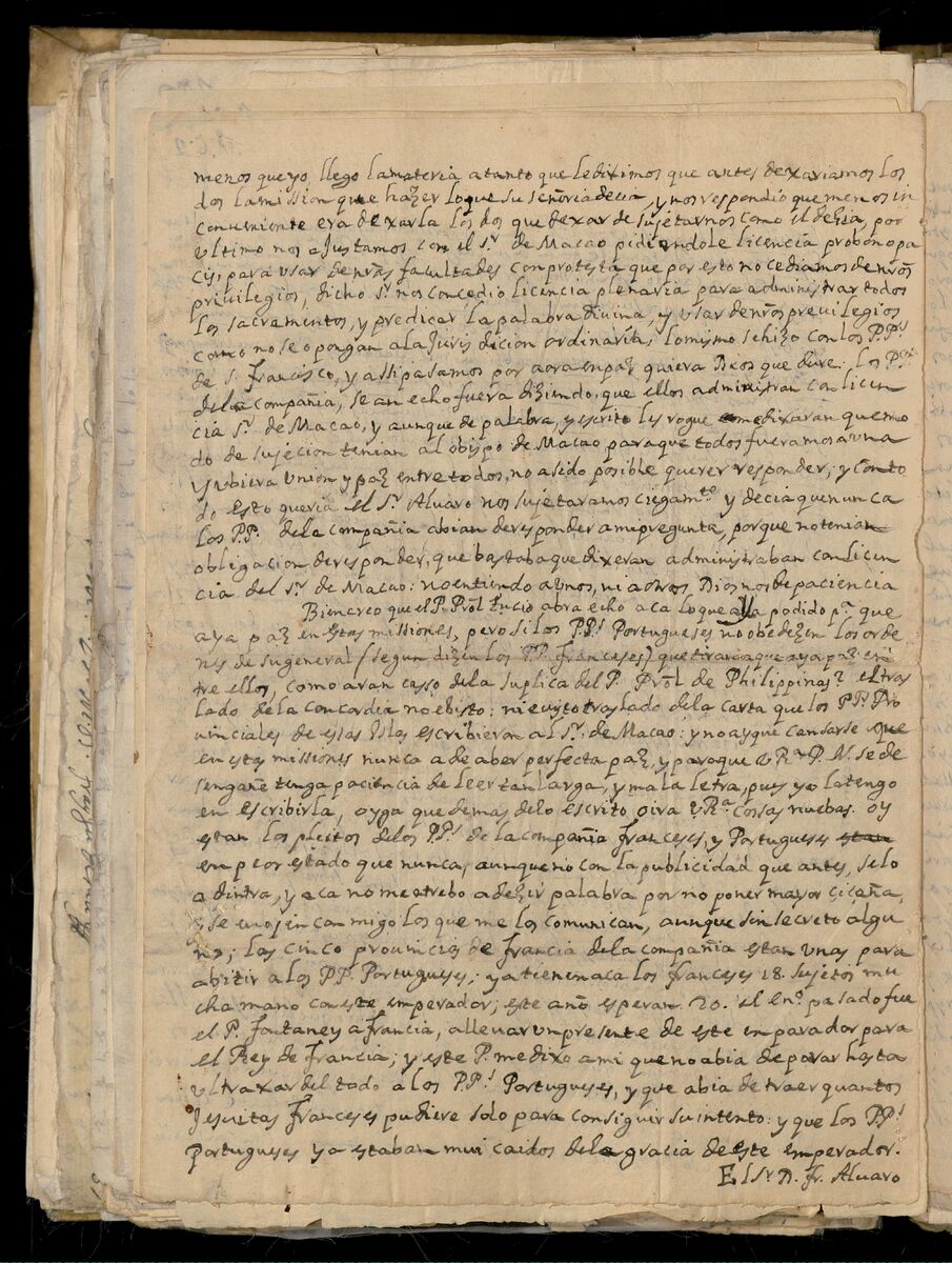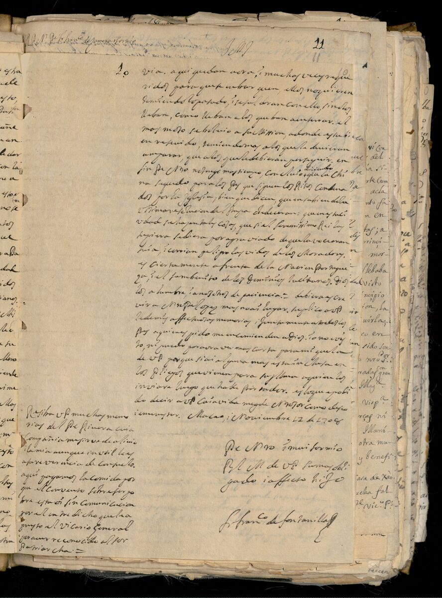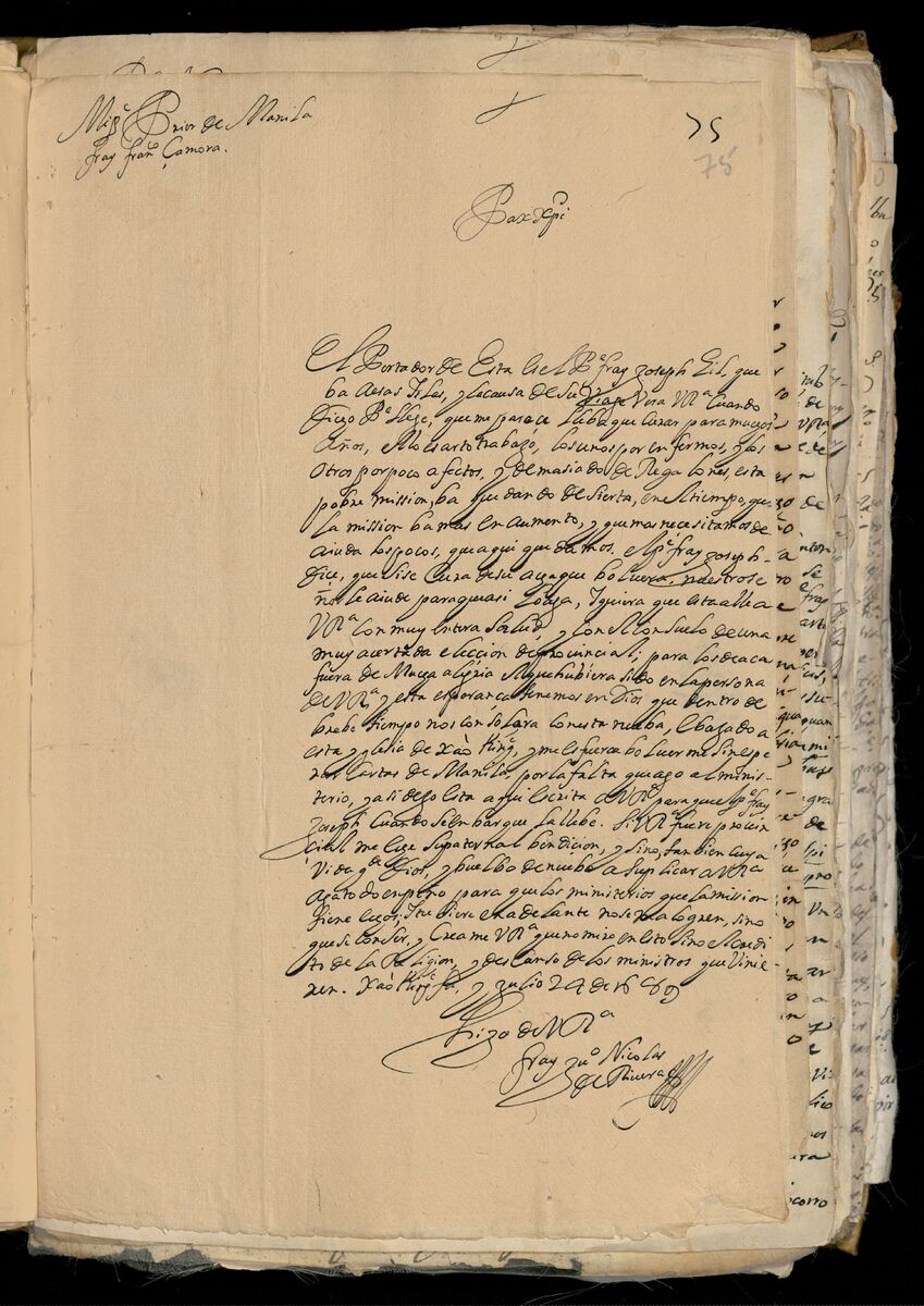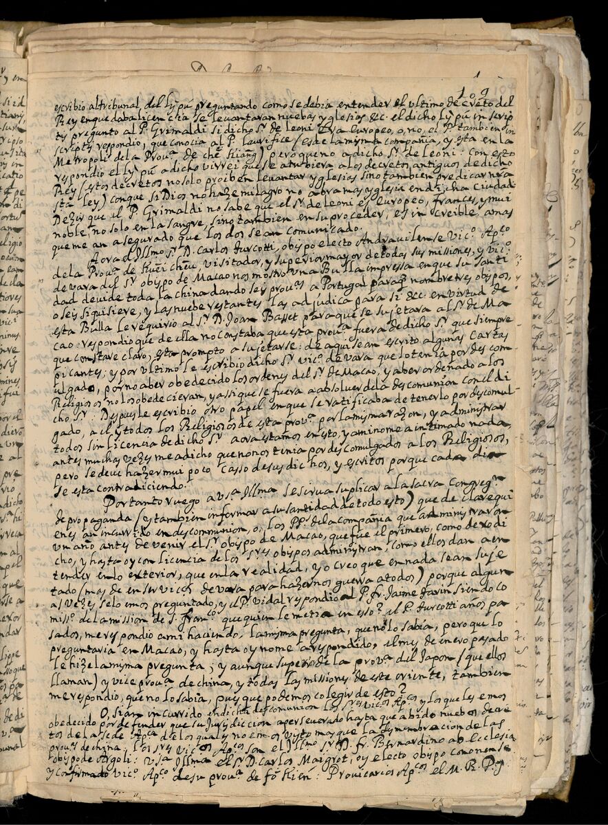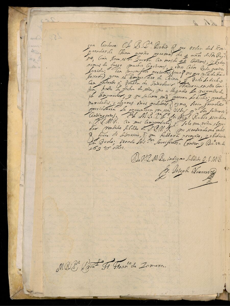 Carta de Fray Juan Nicholas de Rivera a Fray Francisco de Zamora, Macao, 21 de abril de 1709