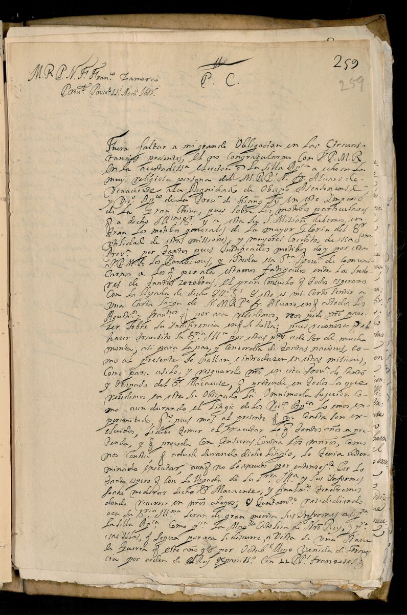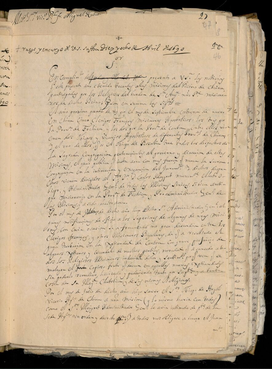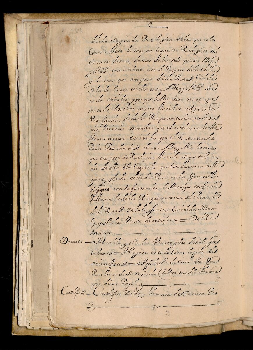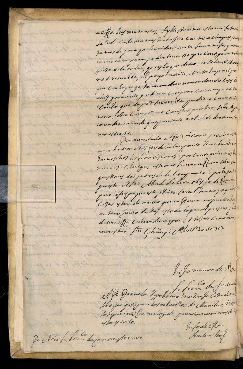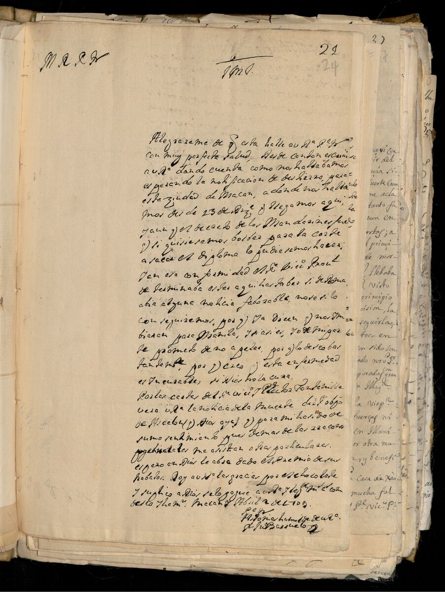 Carta de Fray Juan Nicholas de Rivera a Fray Francisco de Zamora, Macao, 21 de abril de 1709
