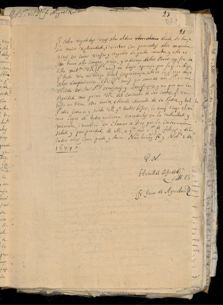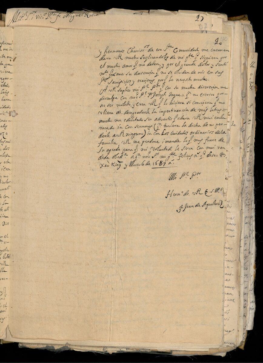Carta de Fray Juan de Aguilar a Fray Francisco de Zamora de Xao-King, 6 de marzo de 1687