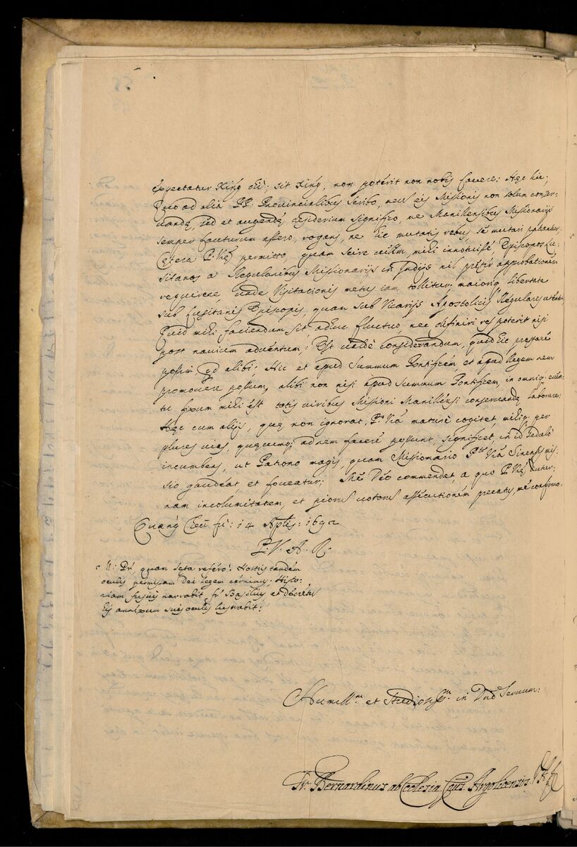 Carta de Fray Francisco de Fontanilla para el Padre Zamora desde Nanking, 20 de diciembre de 1709