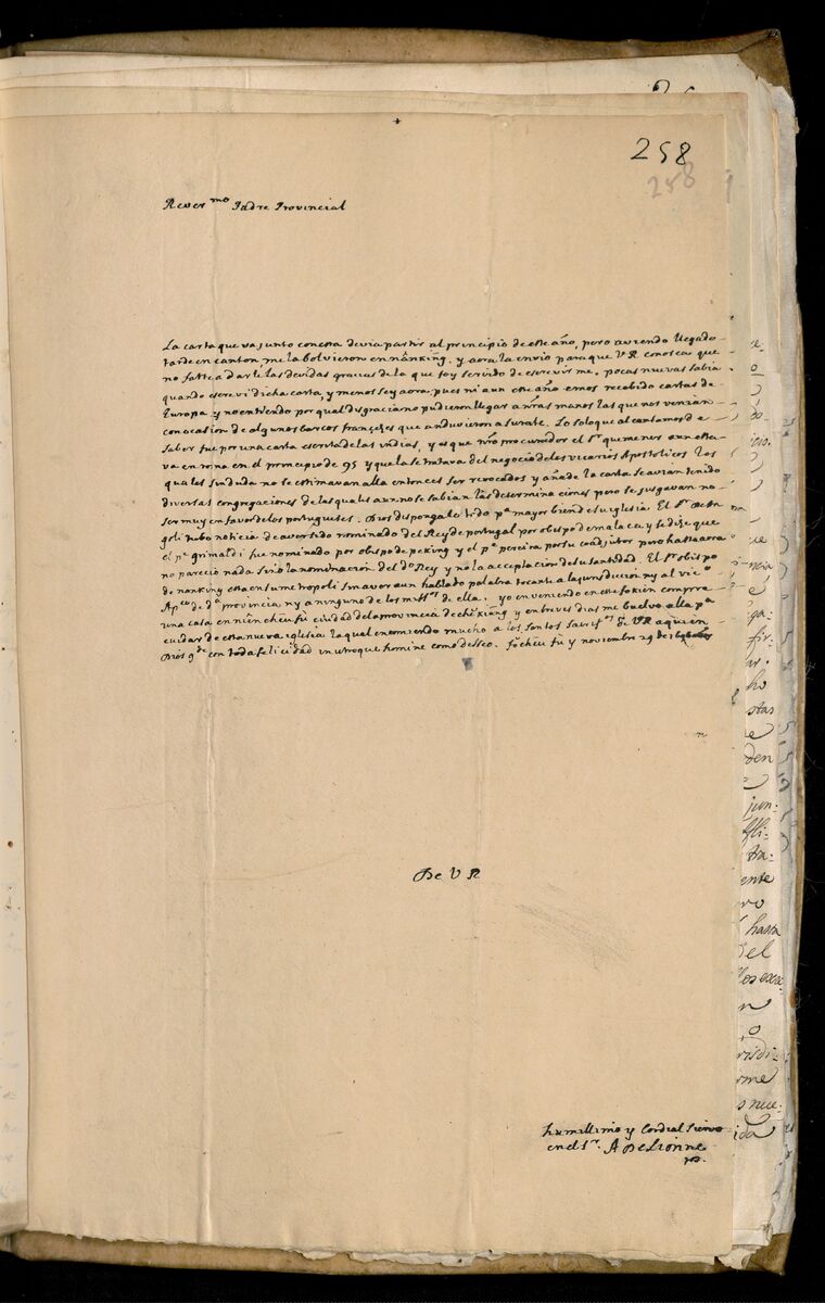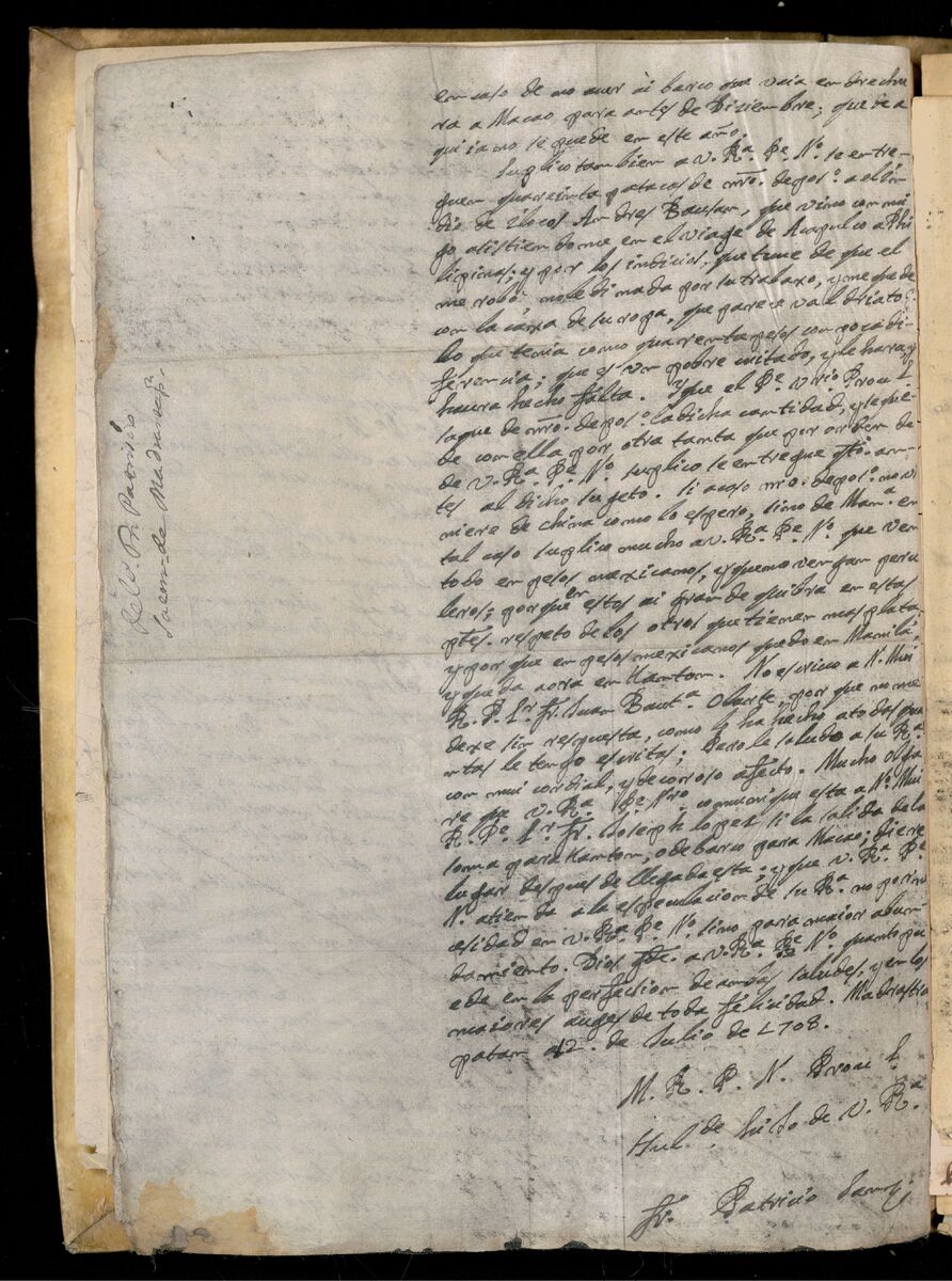 Carta al Padre Provincial, Macao, 12 de noviembre de 1708