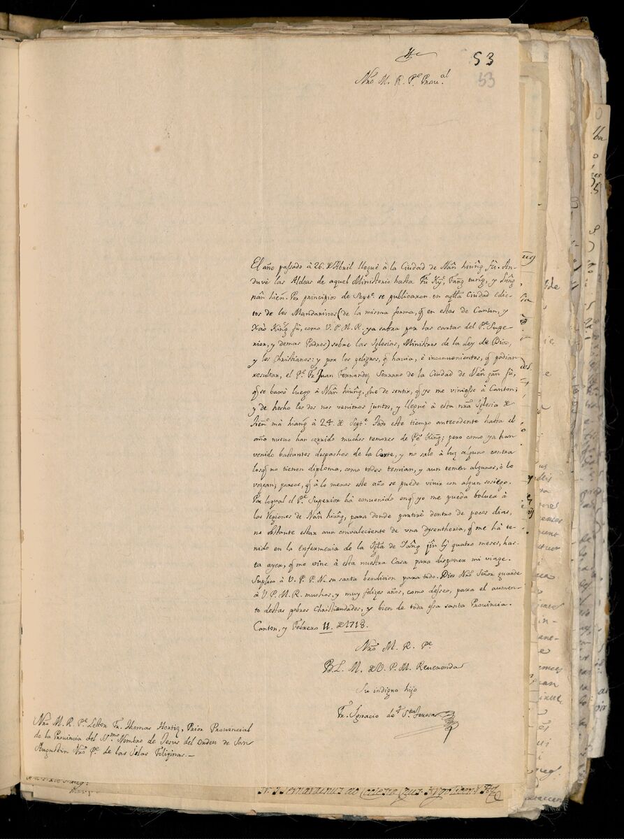 Carta de Fray Ignacio de Santa Teresa a Fray Tomás Ortiz en Manila, de Cantón, 11 de febrero de 1718