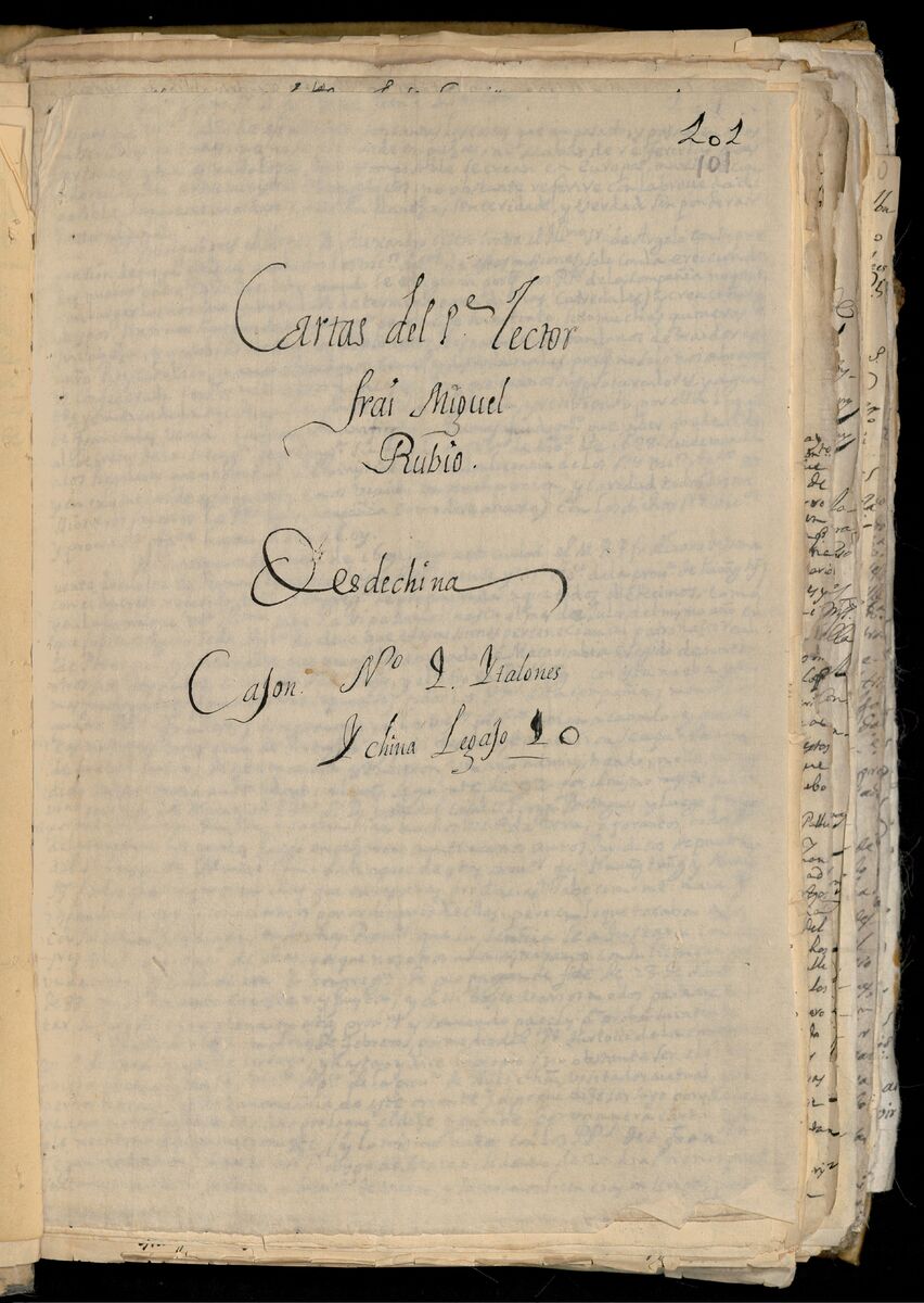 Carátula de las cartas del Padre Lector Fray Miguel Rubio de China, Cajón número 4, Italones y China, Legajo 10.