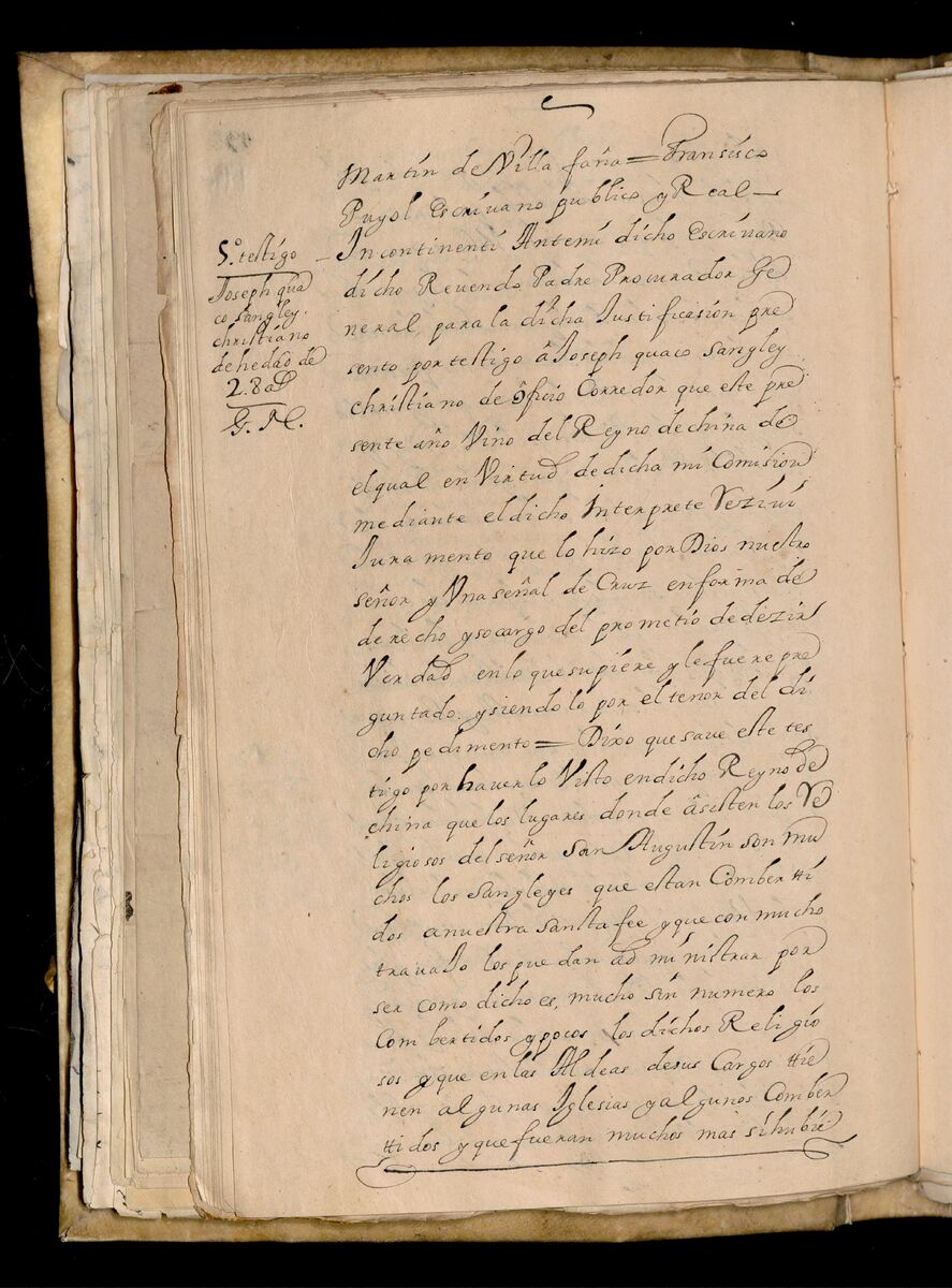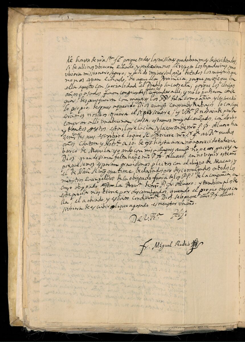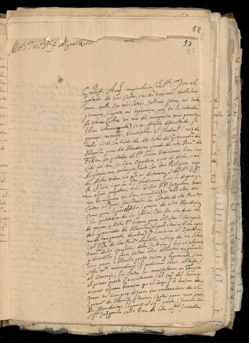 Carta de Fray Joseph Gil a Fray Joseph Duque desde Cantón, 9 de noviembre de 1687.