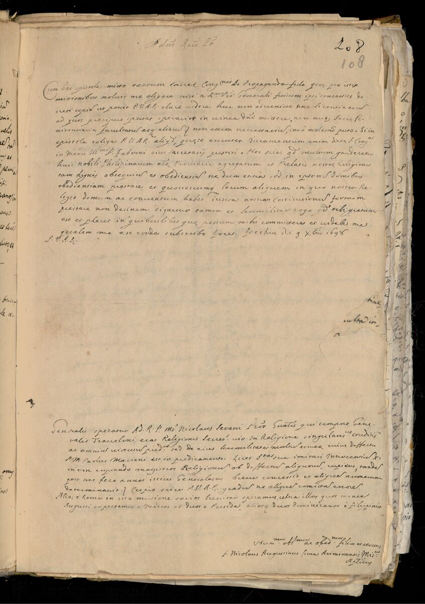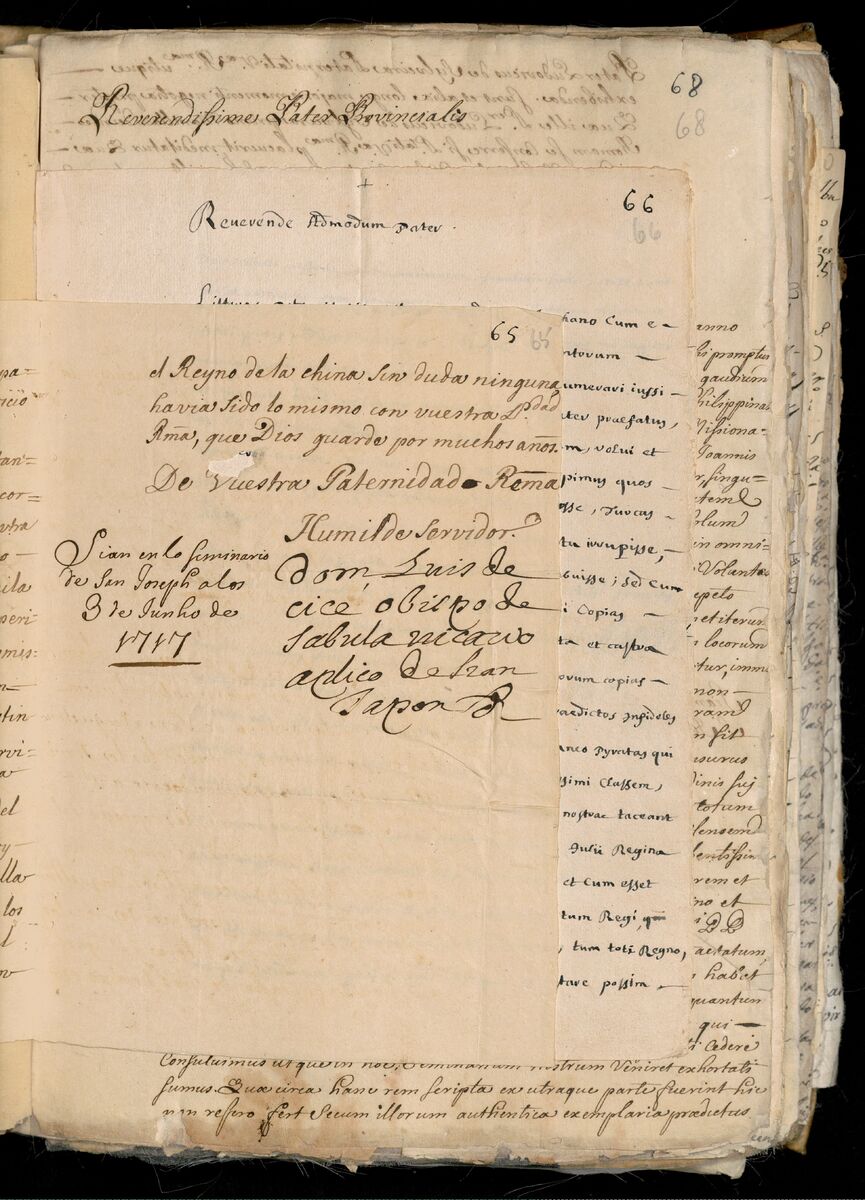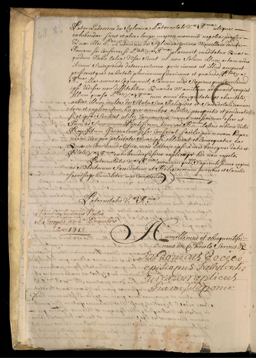 Carta de Luis de Cice al Provincial en Manila, Siam, 2 de diciembre de 1713. In Latin