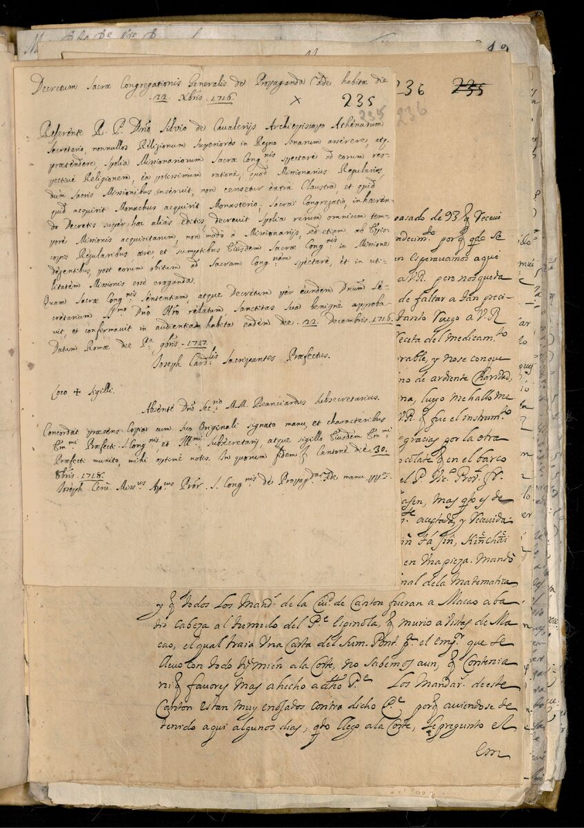 Vol. 2. Orense, Pedro. "Papeles de importancia Pertenecientes A la mission de China. Cuio contenido se hallava en la lista que se pone al final.", 1645-1721