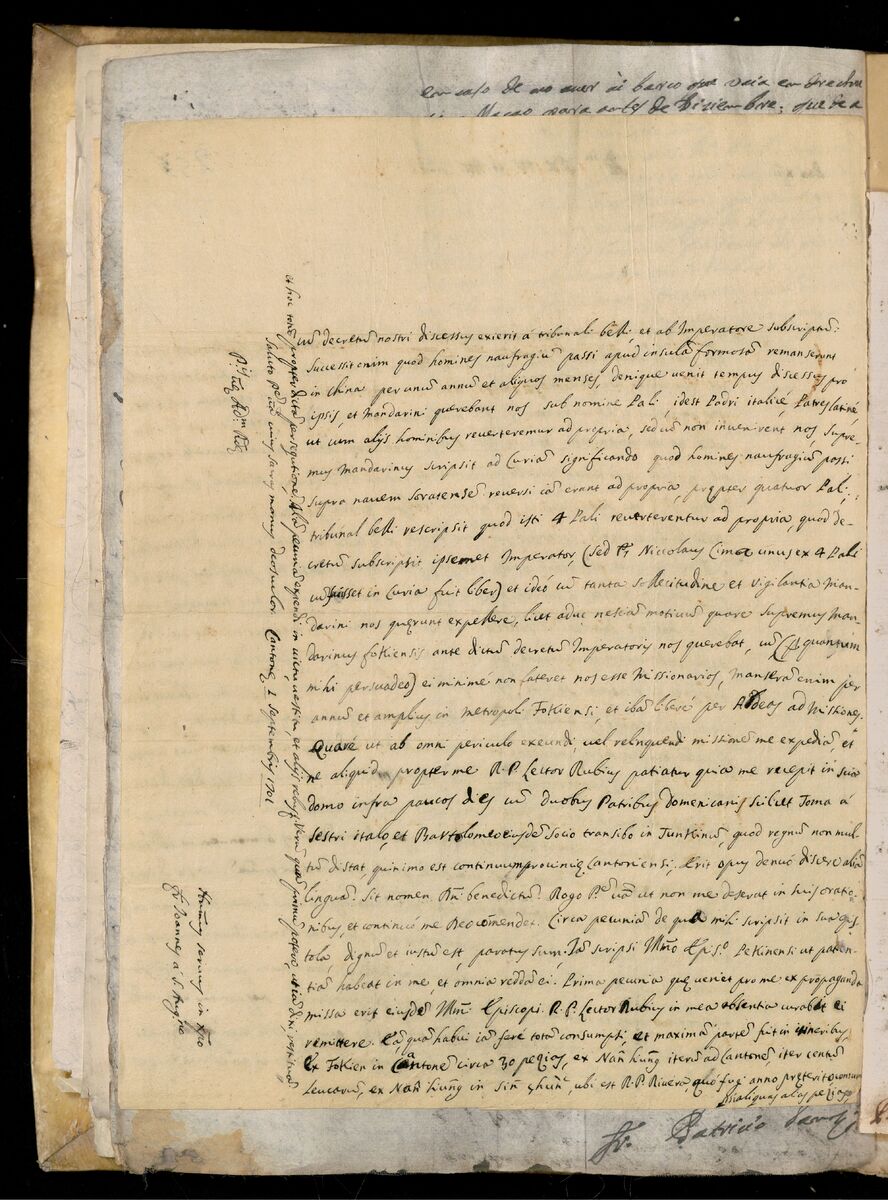Carta de Fray Juan Barruelo desde Cantón, 25 de noviembre de 1708. 25 November 1708