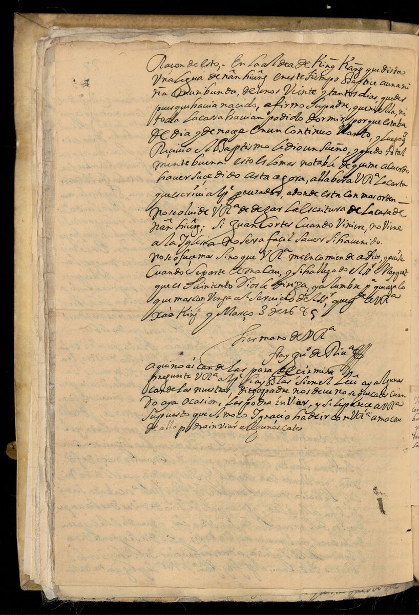 Carta de Fray Juan Nicolás de Rivera a Fray Álvaro de Benavente, Xao-King, 3 de marzo de 1685