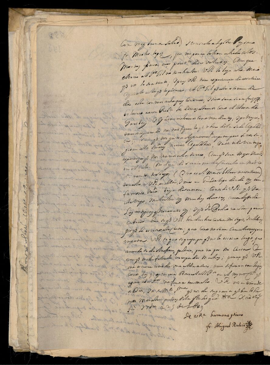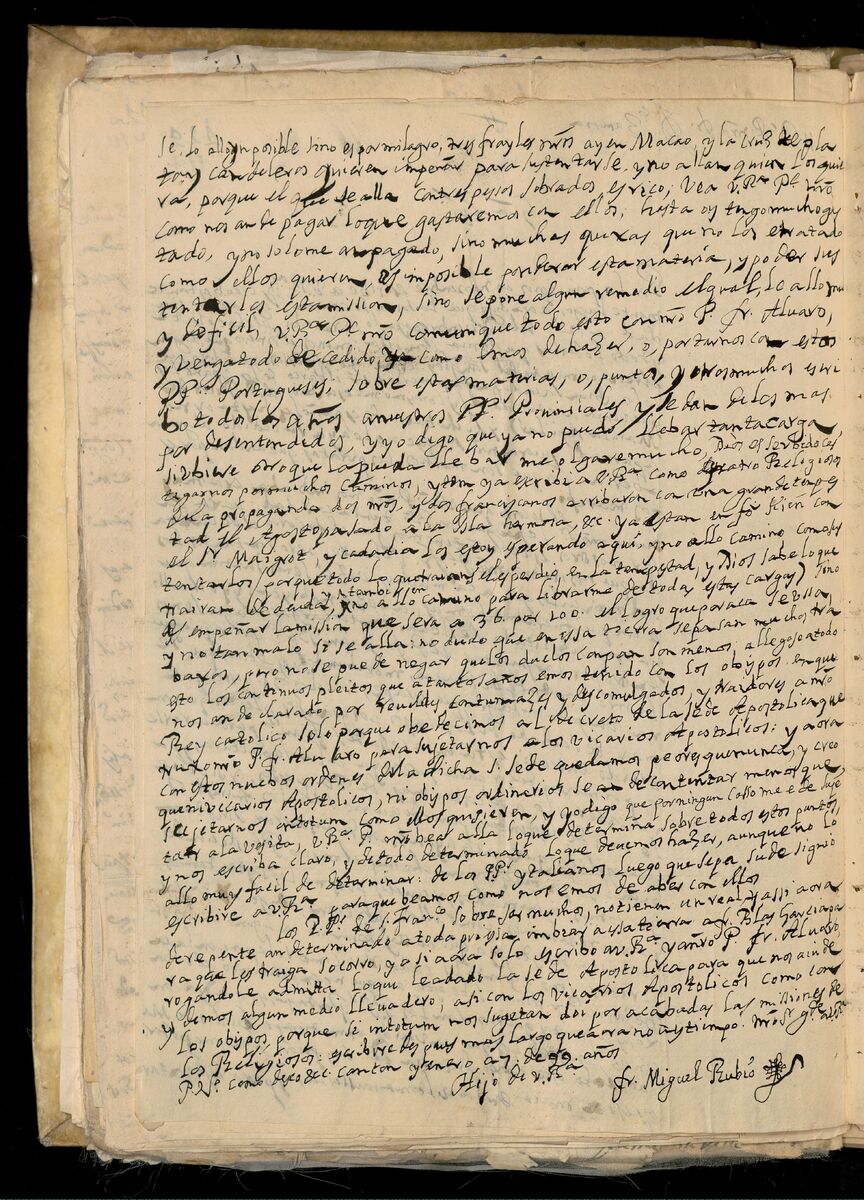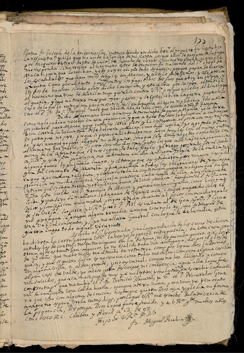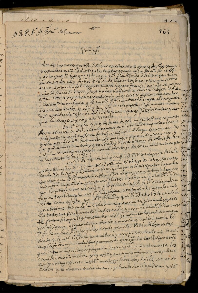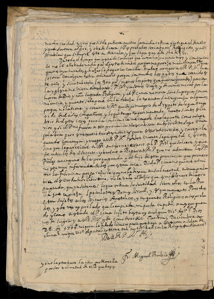 Carta de Fray Miguel Rubio a Fray Francisco de Zamora, Cantón, 10 de noviembre de 1698