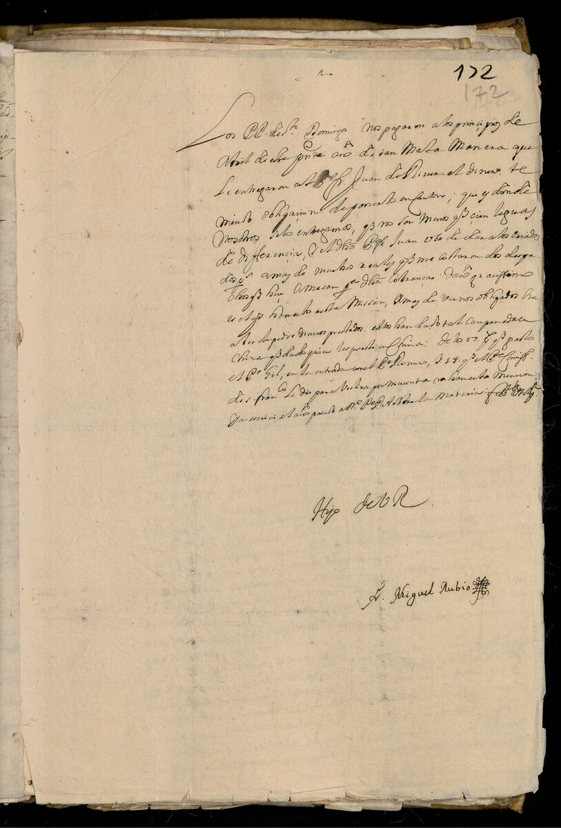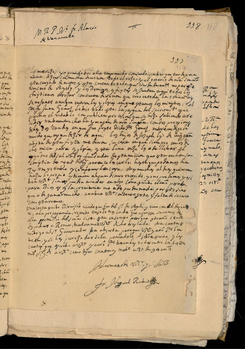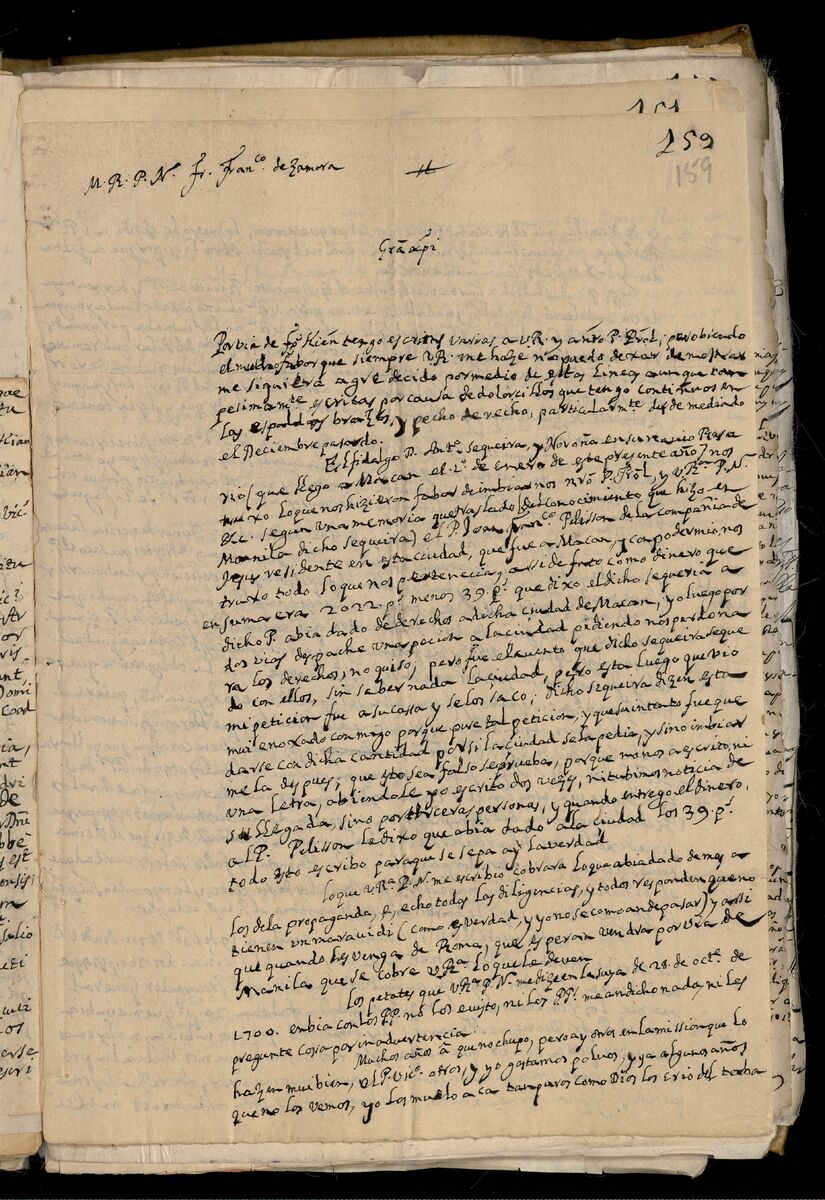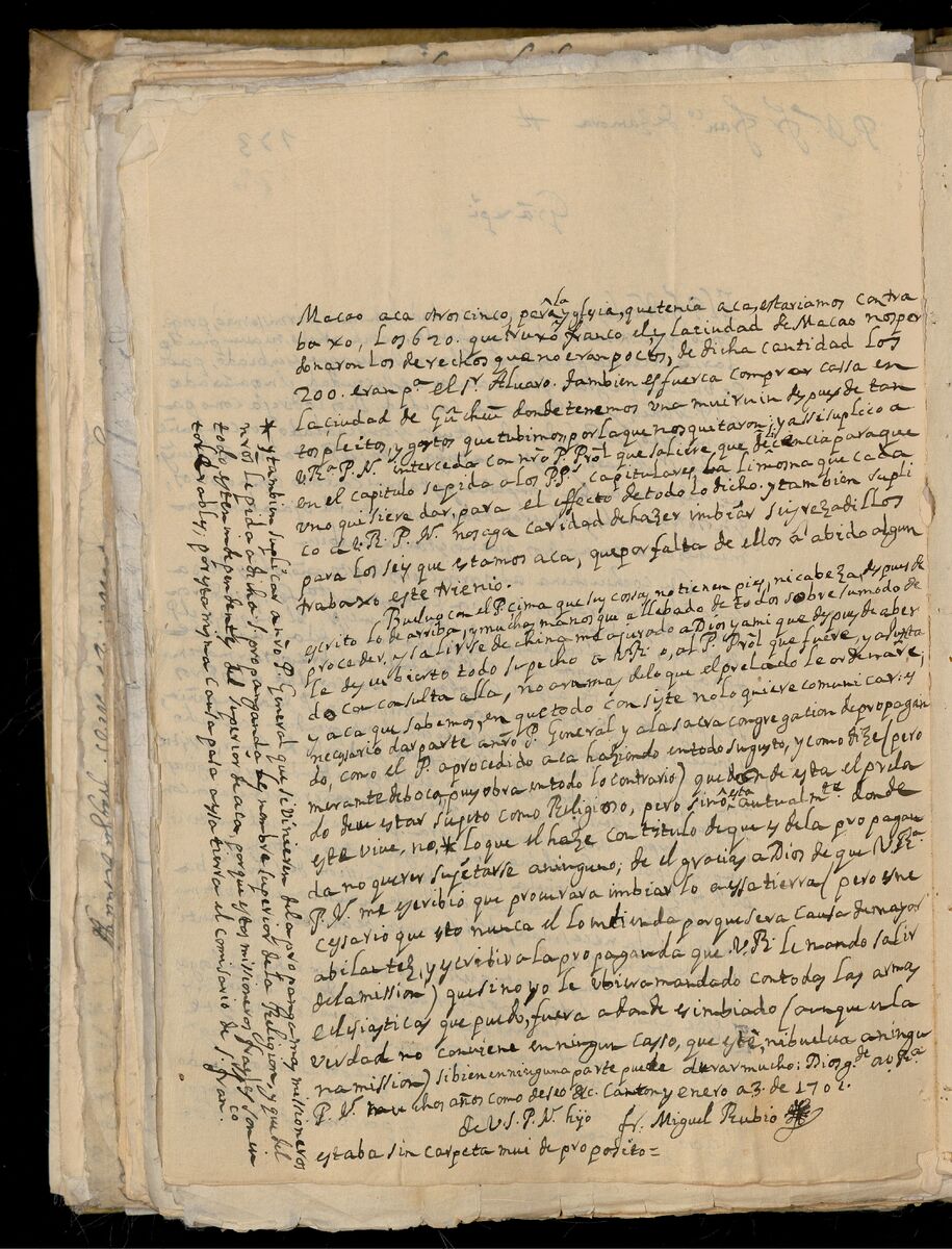 Carta de Fray Miguel Rubio a Fray Francisco de Zamora, Cantón, 10 de noviembre de 1698