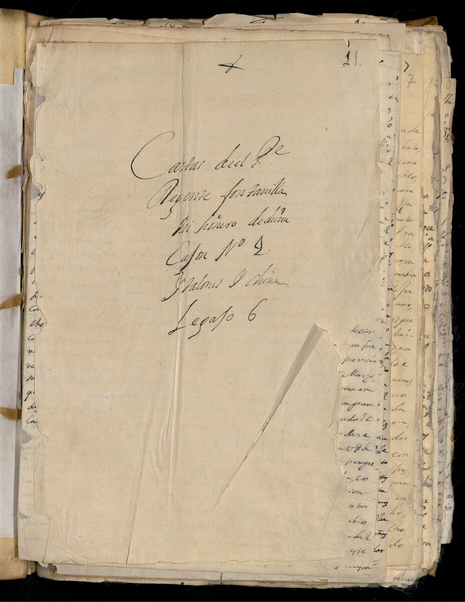 Carátula de las Cartas del Padre Fray Juan de Aguilar y otros de China sobre el estado de las missiones. Cajon N° 4 Ytalones y China Legajo 8, 1645-1721.
