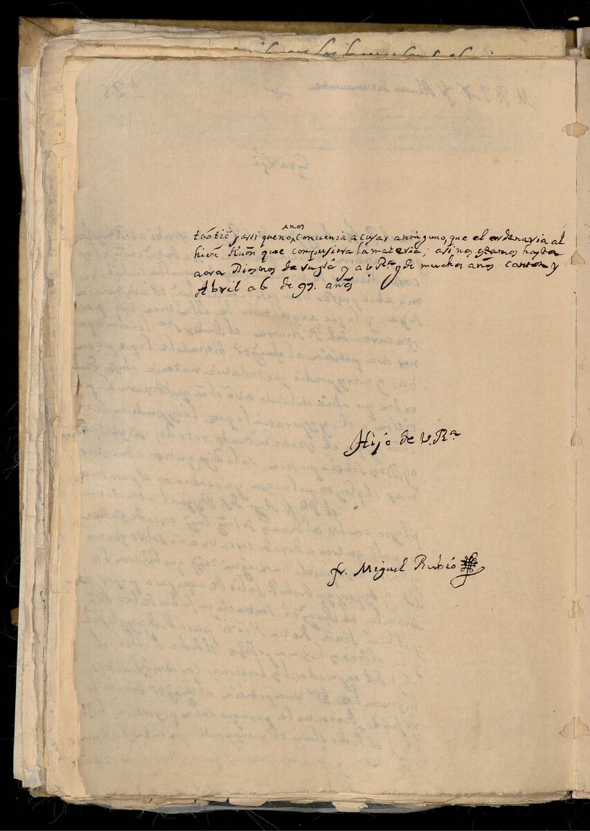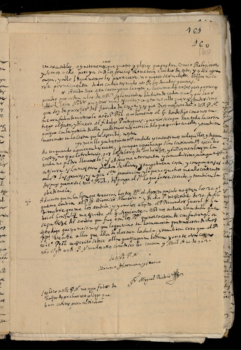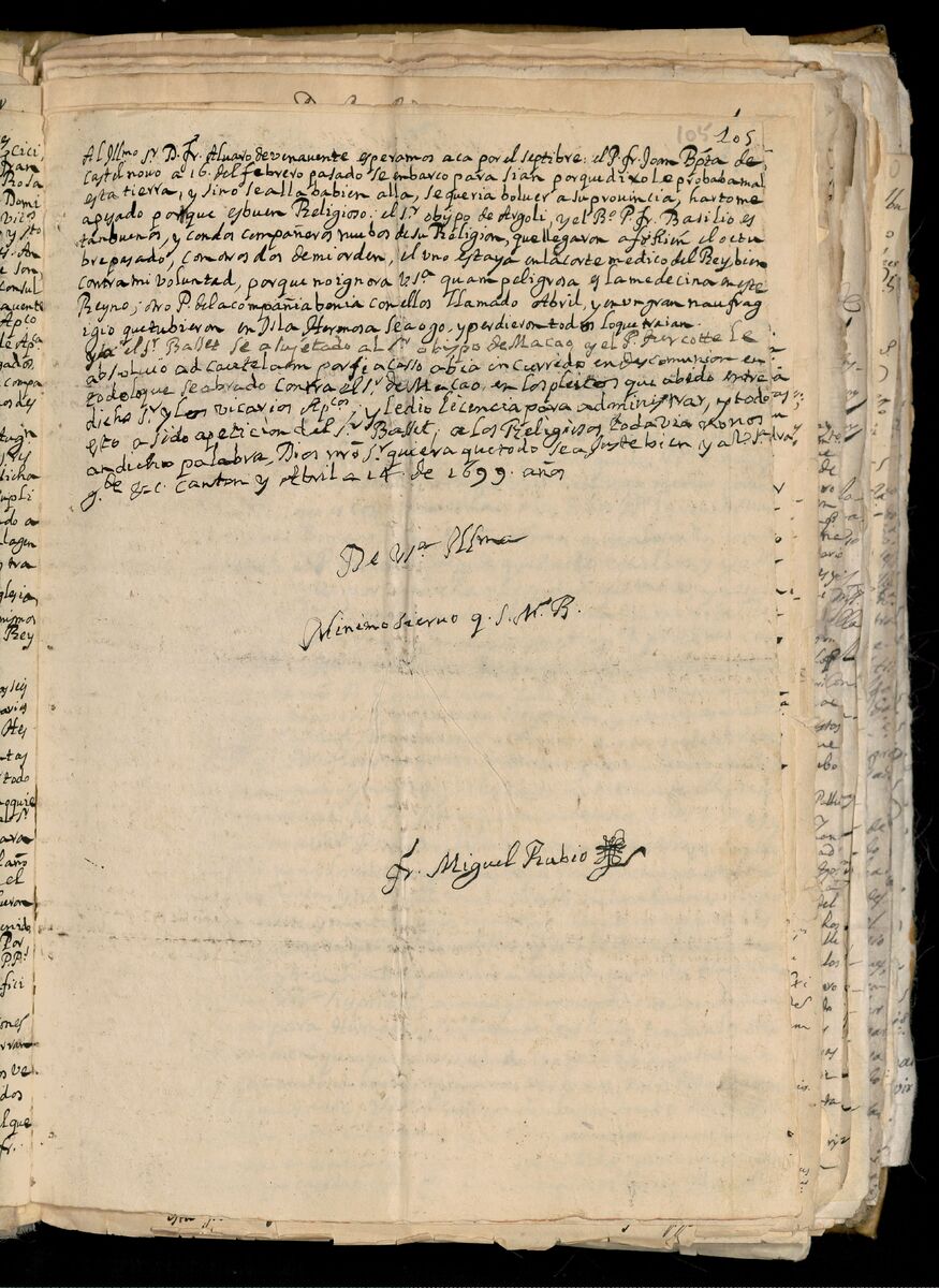 Carta de Fray Miguel Rubio a to Fray Juan Francisco Leonessa de Cantón, 14 de abril de 1699