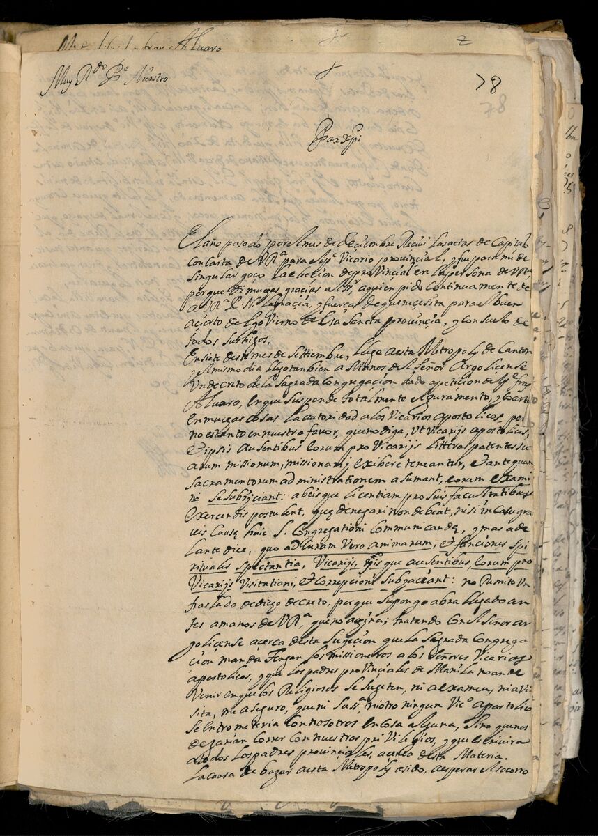 Carta de Fray Alonso Domínguez a Fray Esteban Ramírez de Roma, 8 de agosto de 1700.