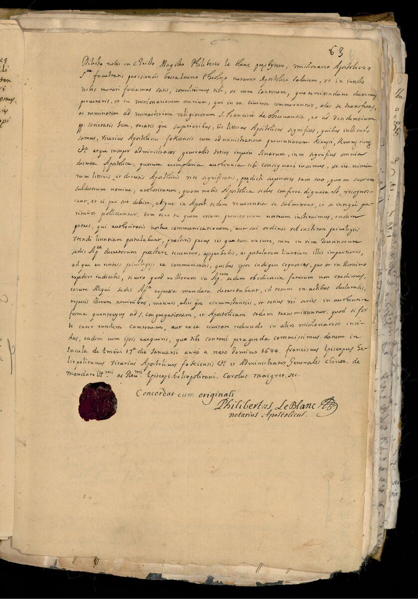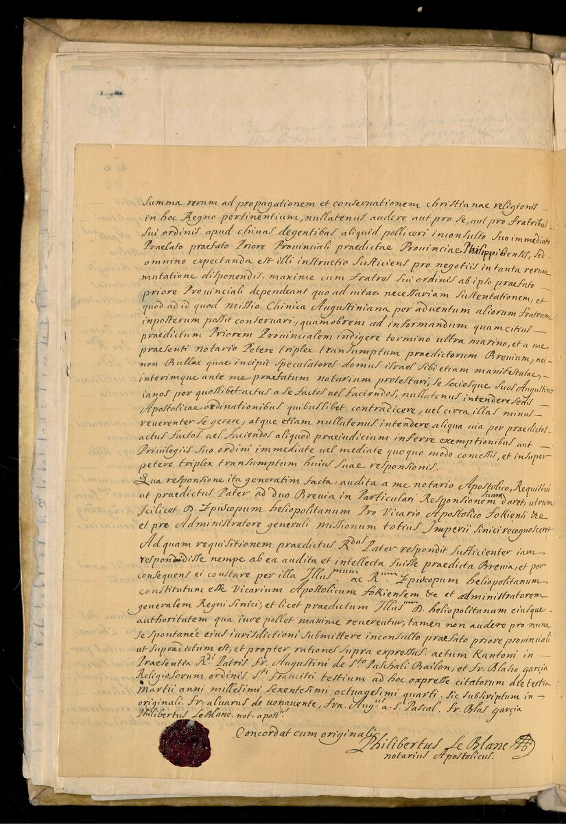 Declaración en Latín de Philibert Le Blanc sobre la misión de Fukien, 3 de marzo de 1684