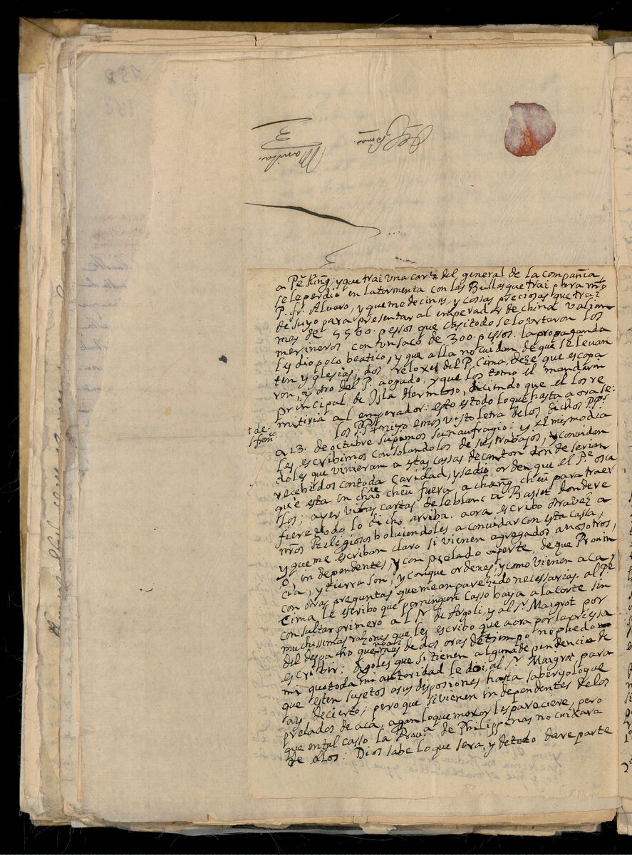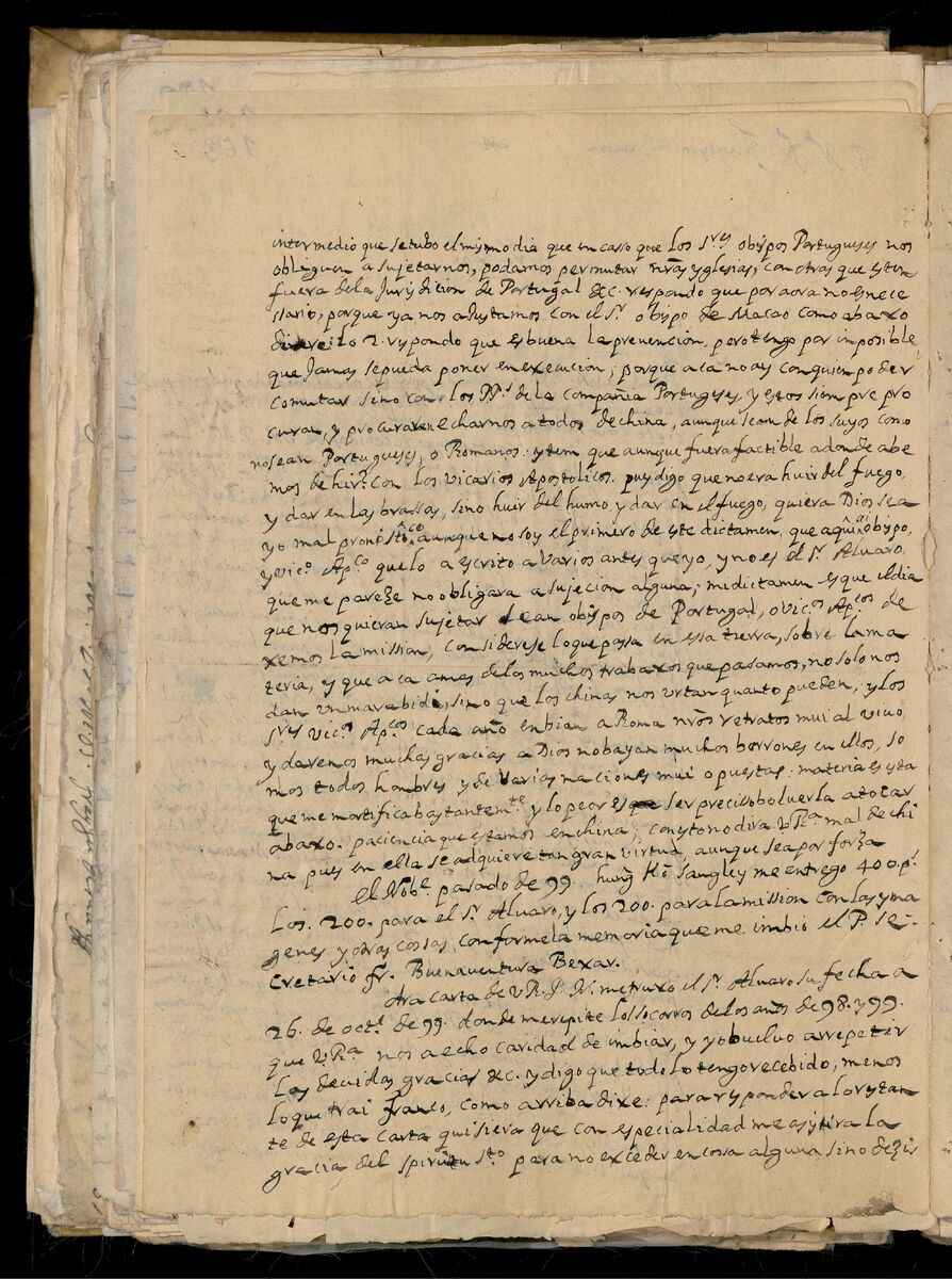 Carta de Fray Bernardino de las Llagas a Fray Ignacio Mercado de Nanking, 20 de agosto de 1698