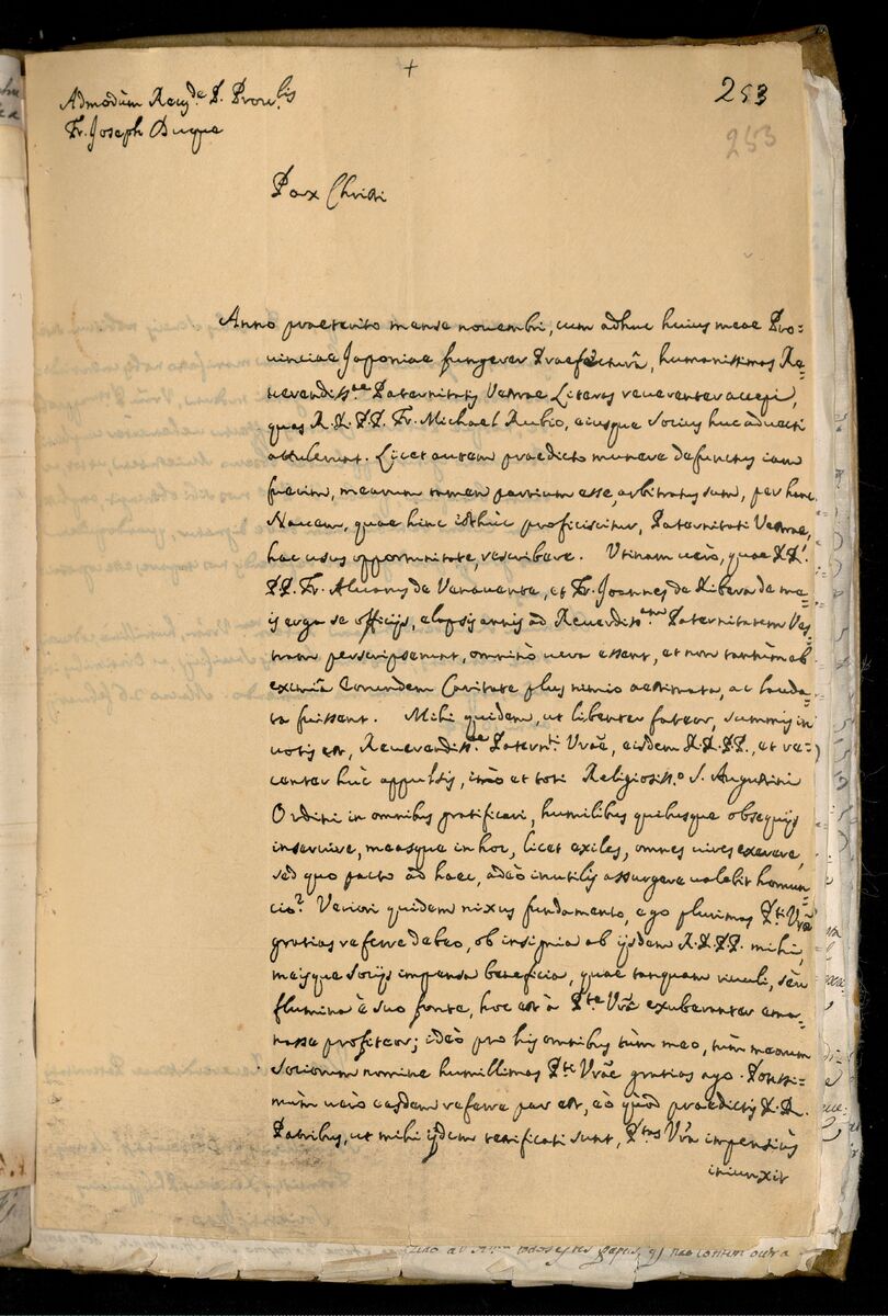 Carta de en latín de Fray Joanes de San Agustín a Fray Miguel Rubio, Fu-chou, 6 de marzo de 1699