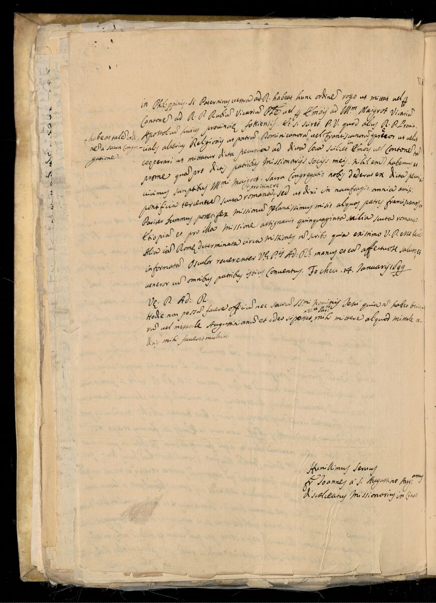 Carta de Fray Joanes de San Agustín a Fray Miguel Rubio, Fu-chou, 14 de enero de 1699