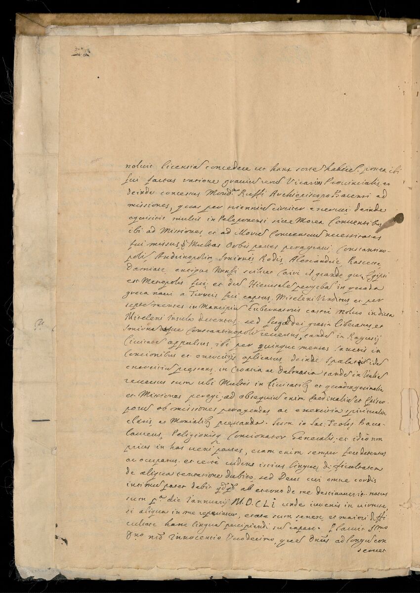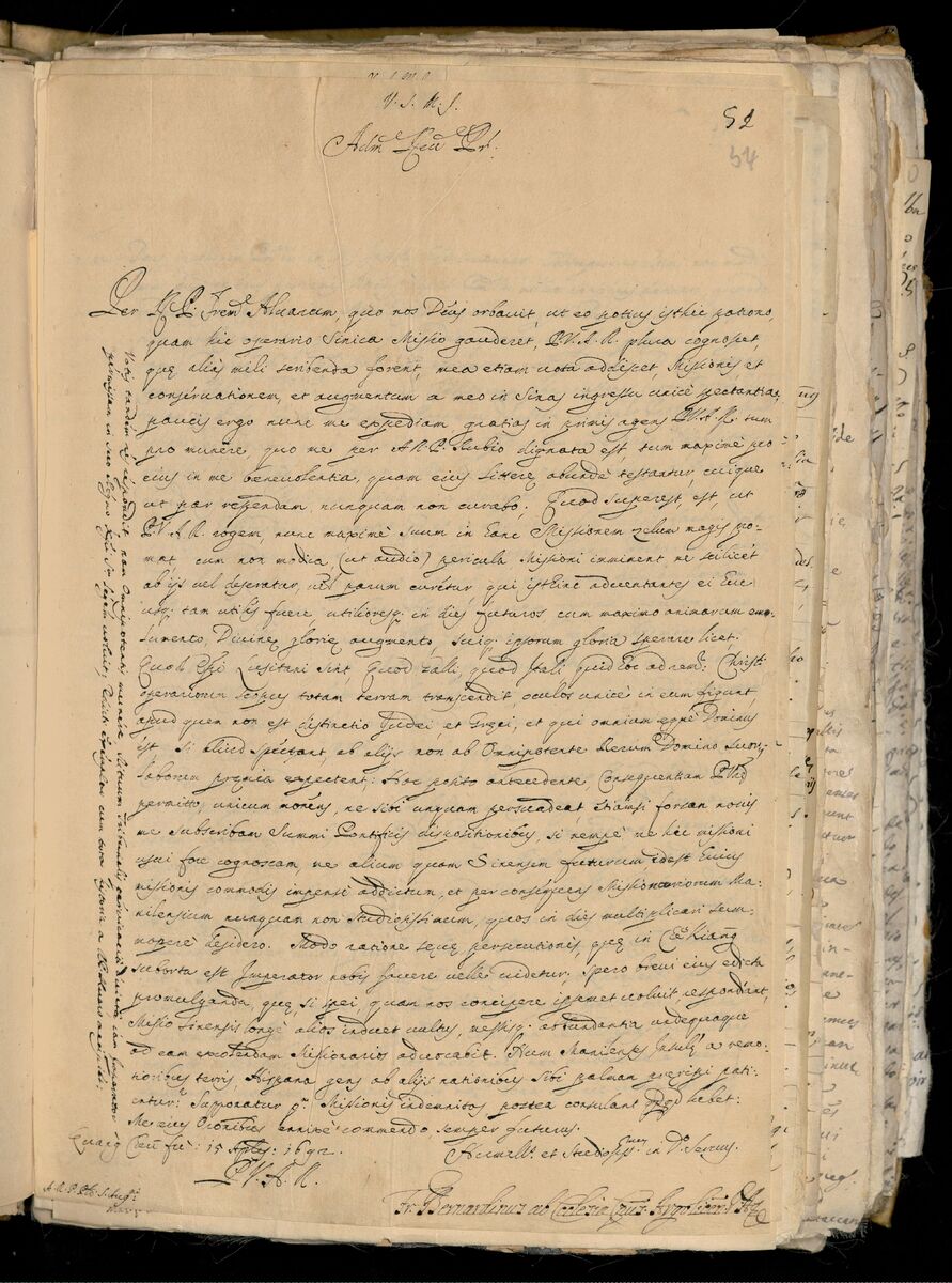 Carta en latín de Fray Nicolás Agustín Cima a Fray Miguel Rubio.