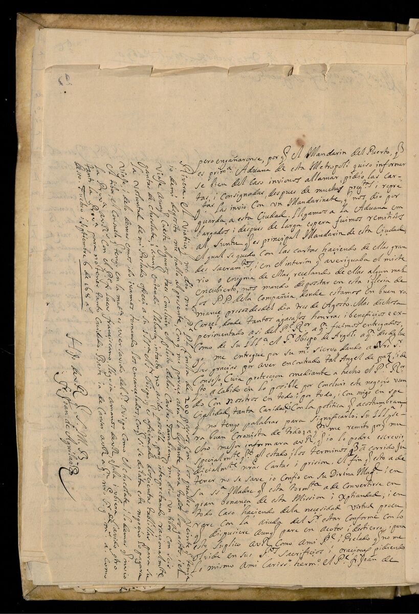 Carta de Fray Juan de Aguilar al Prior Fray Miguel de Rubio de Manila, de Fucheo, 6 de septiembre de 1680
