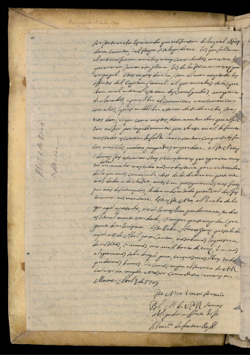 Carta escrita por Fray Francisco de Fontanilla desde Macao, 3 de abril de 1709