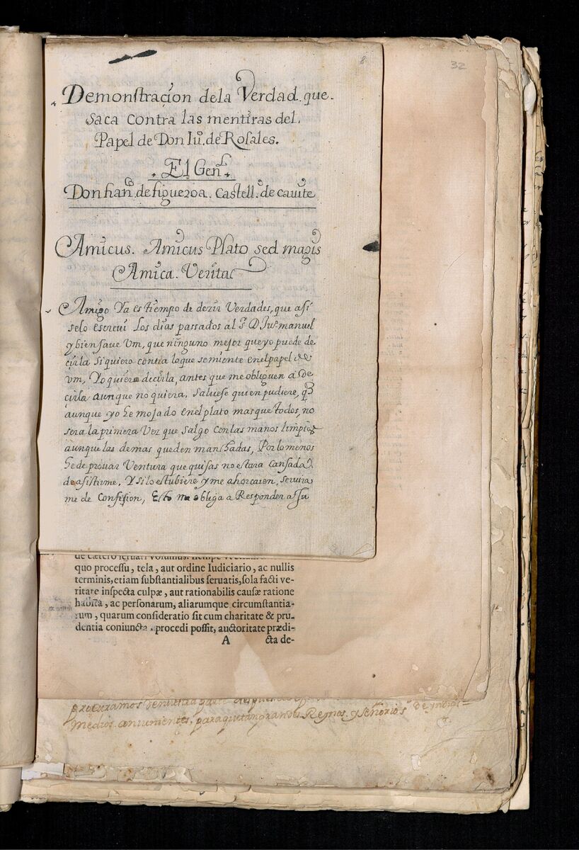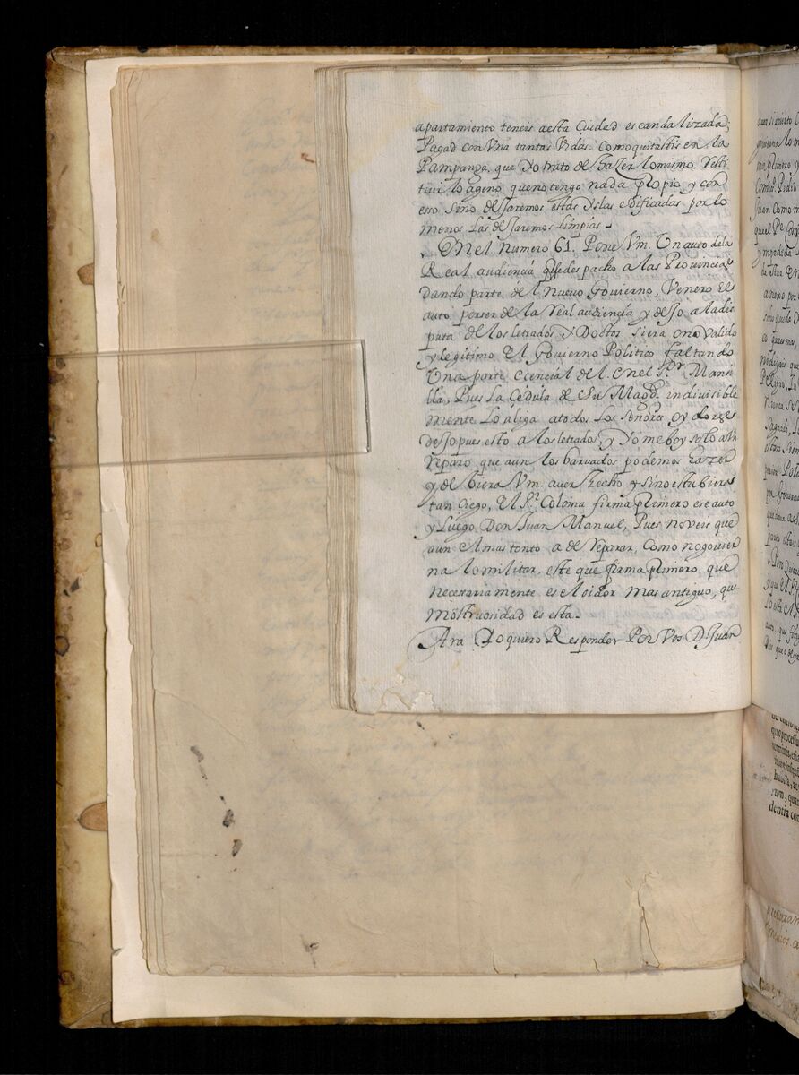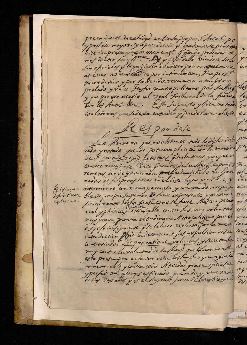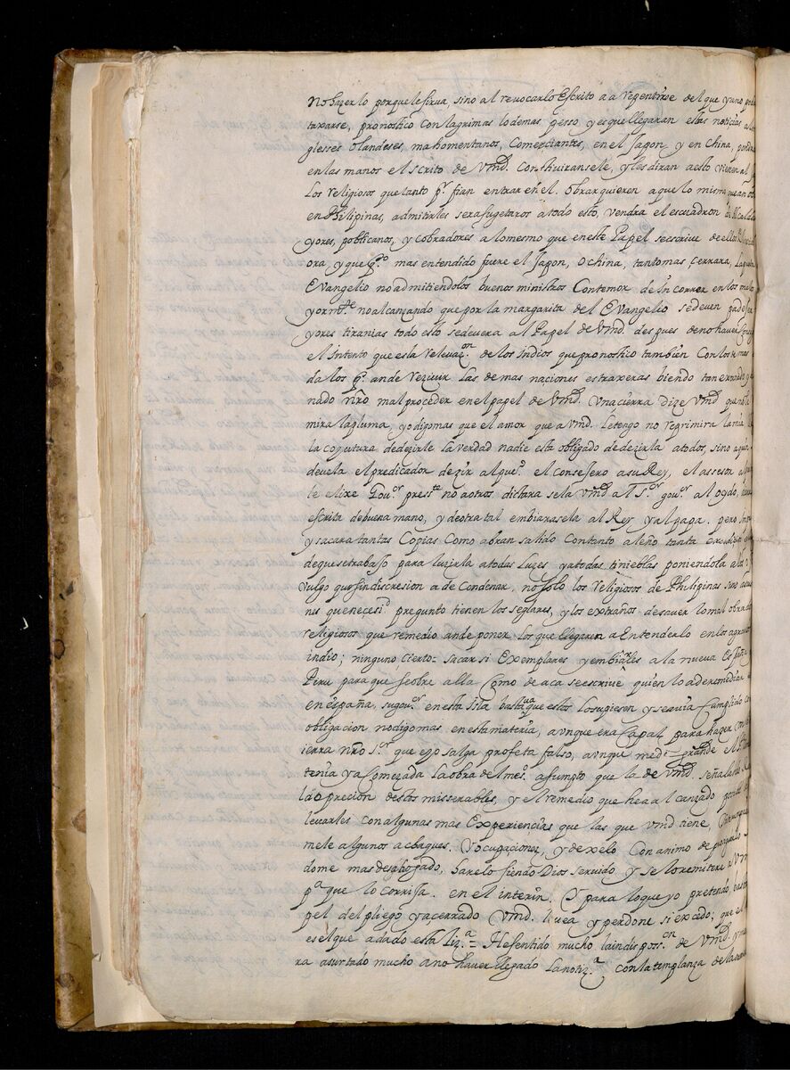 Copia de una carta que Fray Rodrigo de Cárdenas, el Obispo de Nueva Segovia, escribió al oidor Don Salvador Gómez de Espinosa.1650s/1698