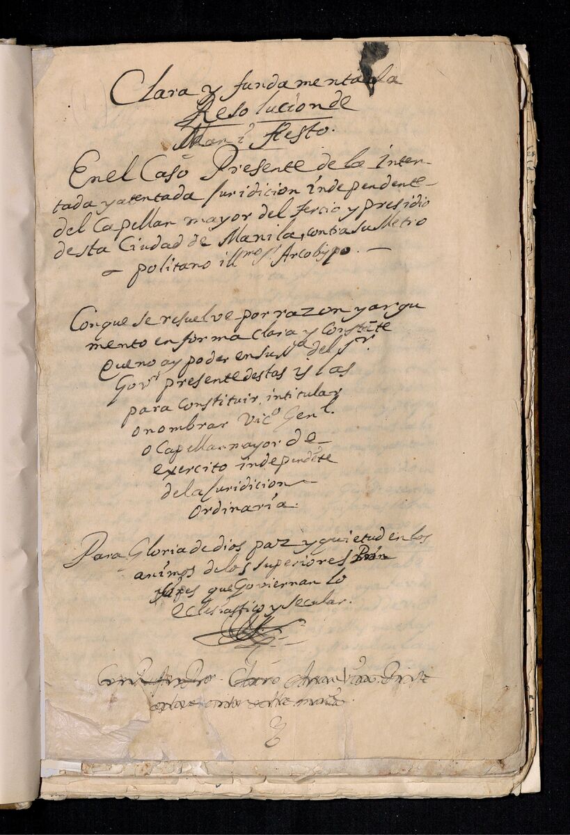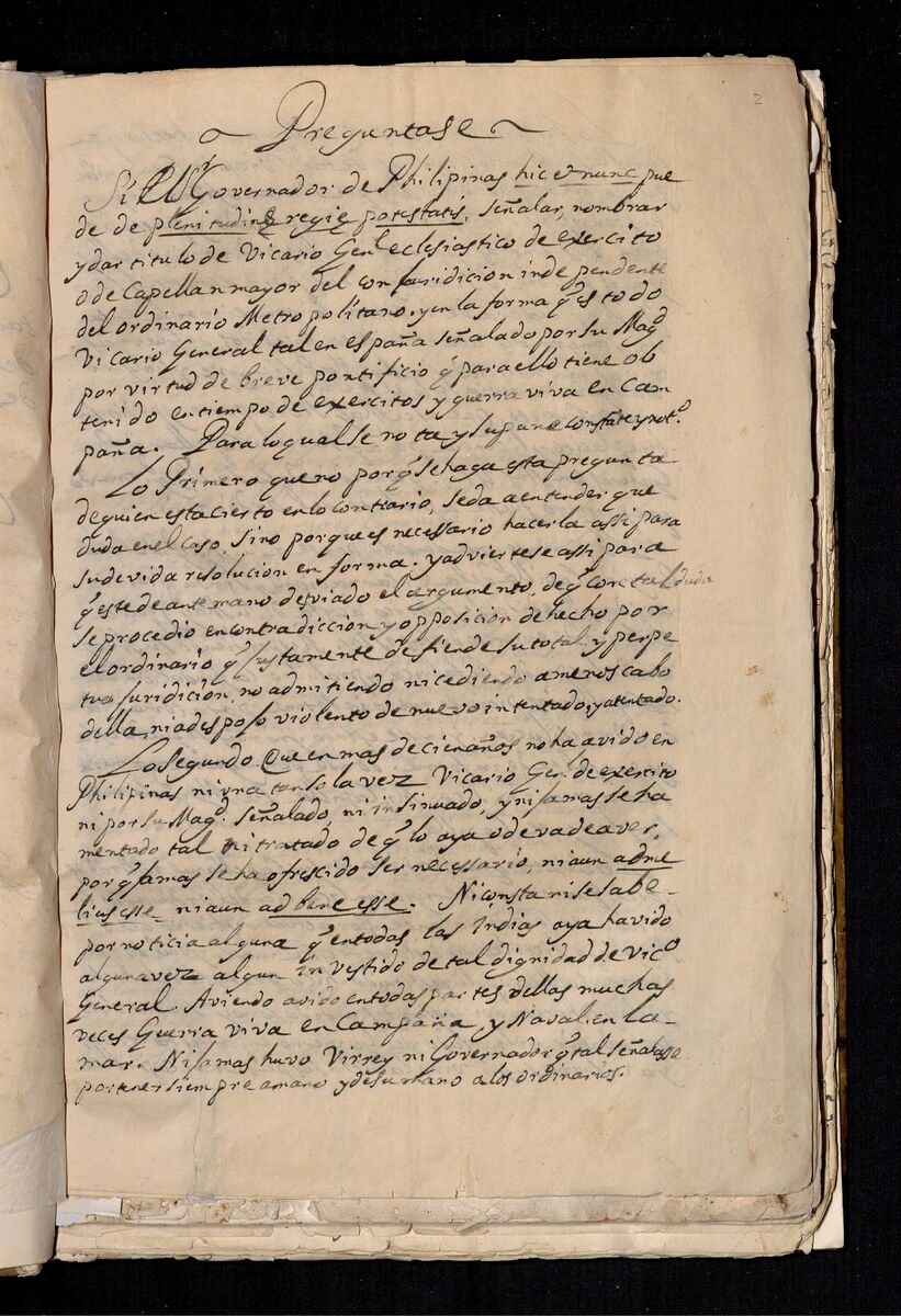 Consulta de que si el gobernador de Filipinas tiene la autoridad de nombrar al Vicario General o al Capellán Mayor del ejército