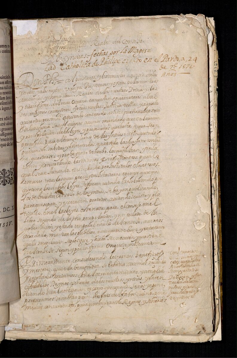 Ordenanzas Reales del Consejo de las Indias hechas por la Majestad Católica de Felipe, escrito en el Pardo a 24 de septiembre del 1571