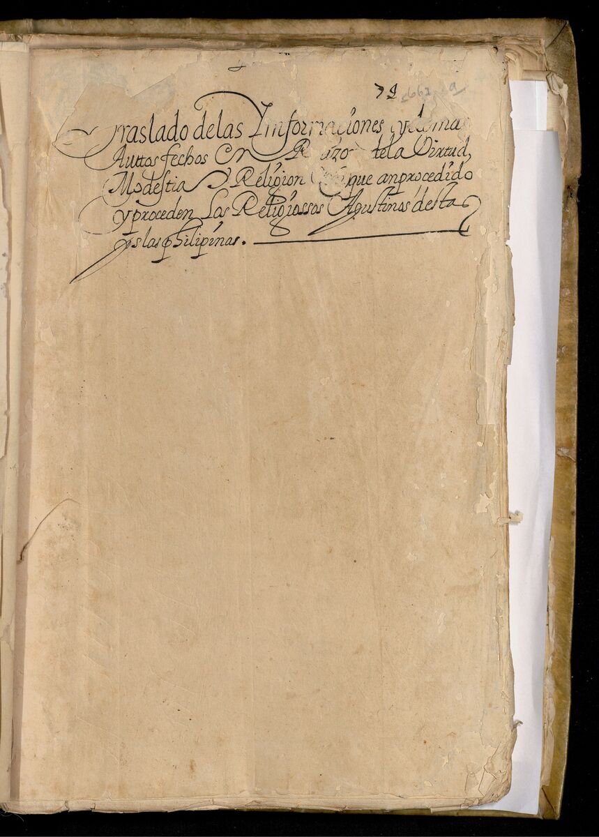 Traslado de las informaciones y autos hechas sobre las acciones de los frailes de la Orden de San Agustín en Filipinas, 1655