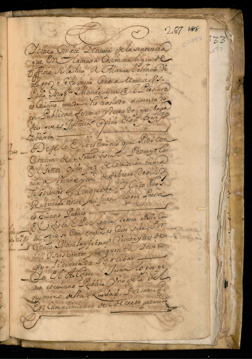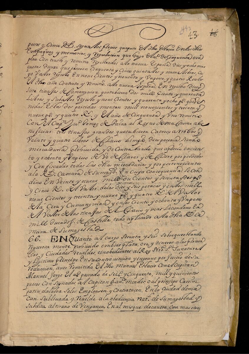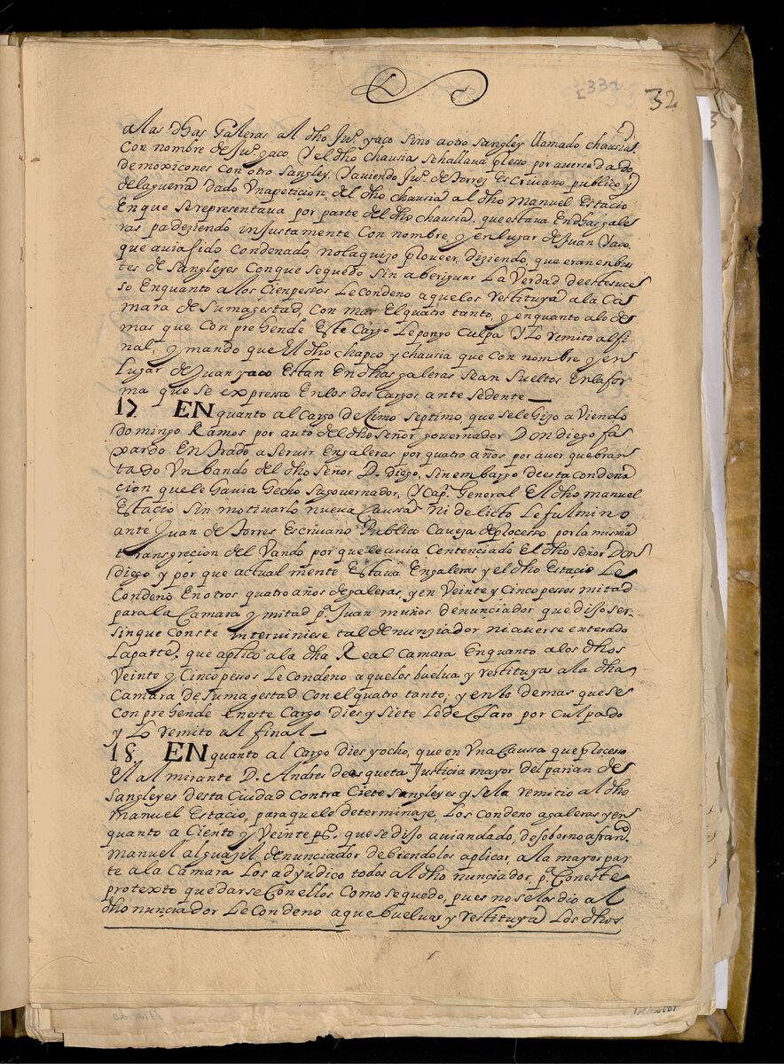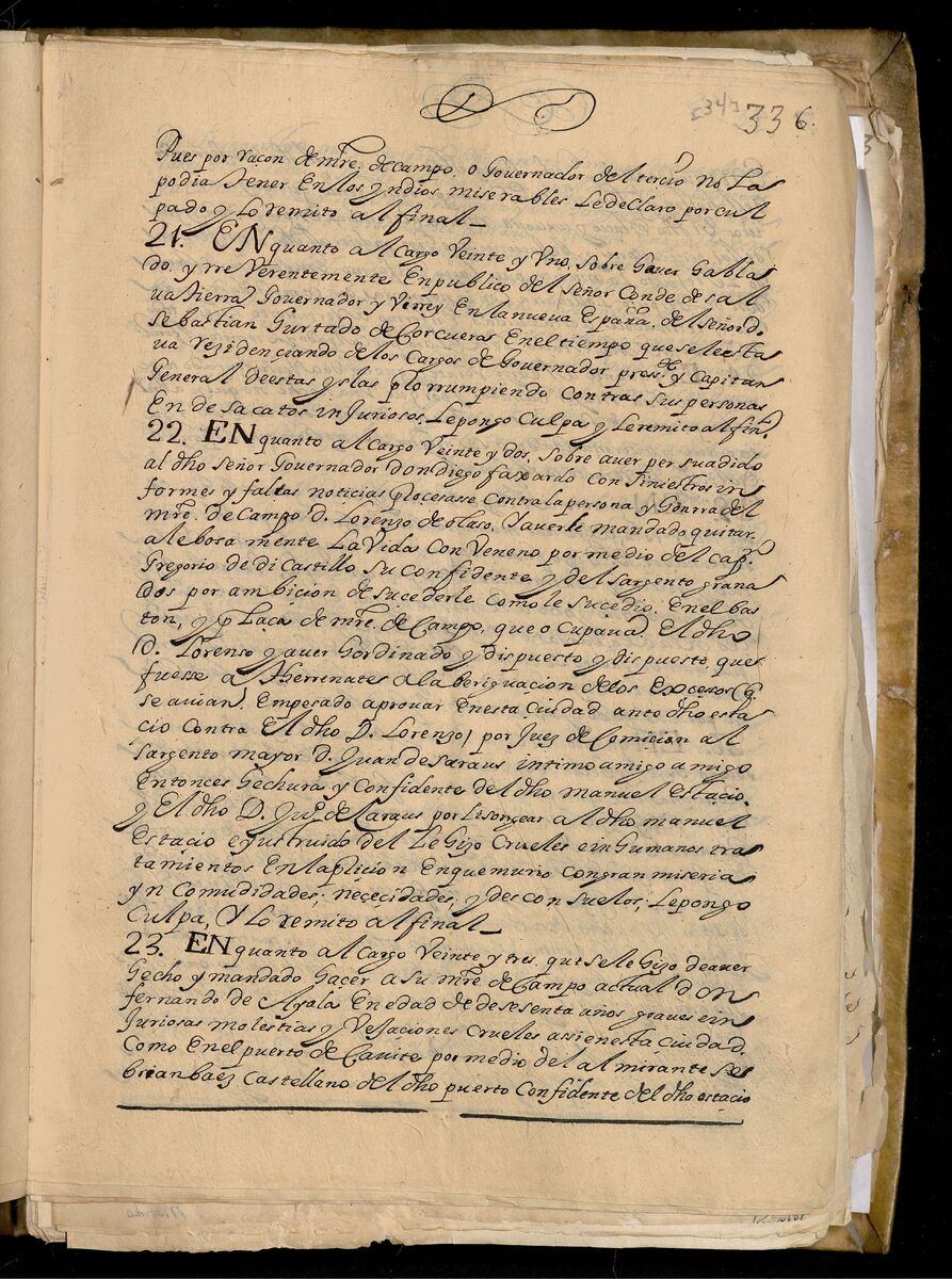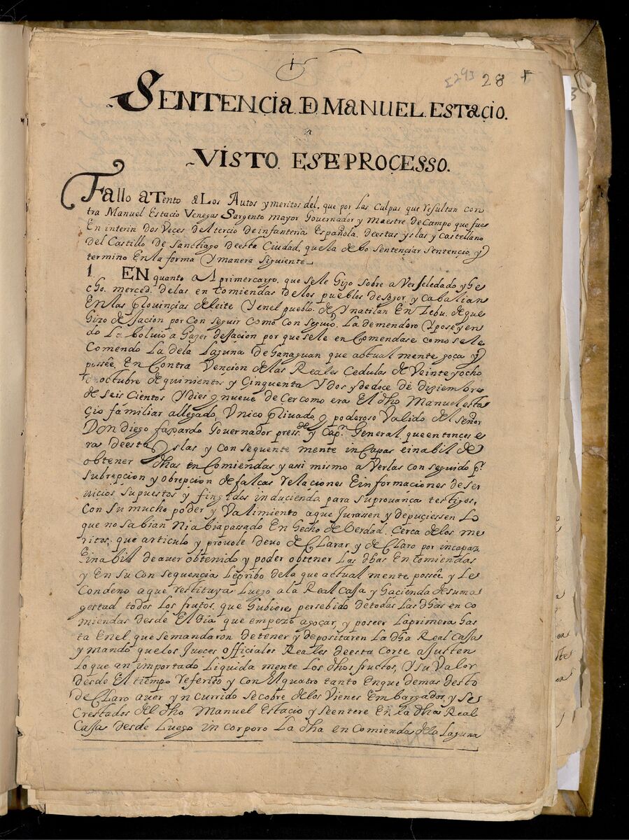 Sentencia contra Manuel Estacio Venegas, sargento mayor. 1654