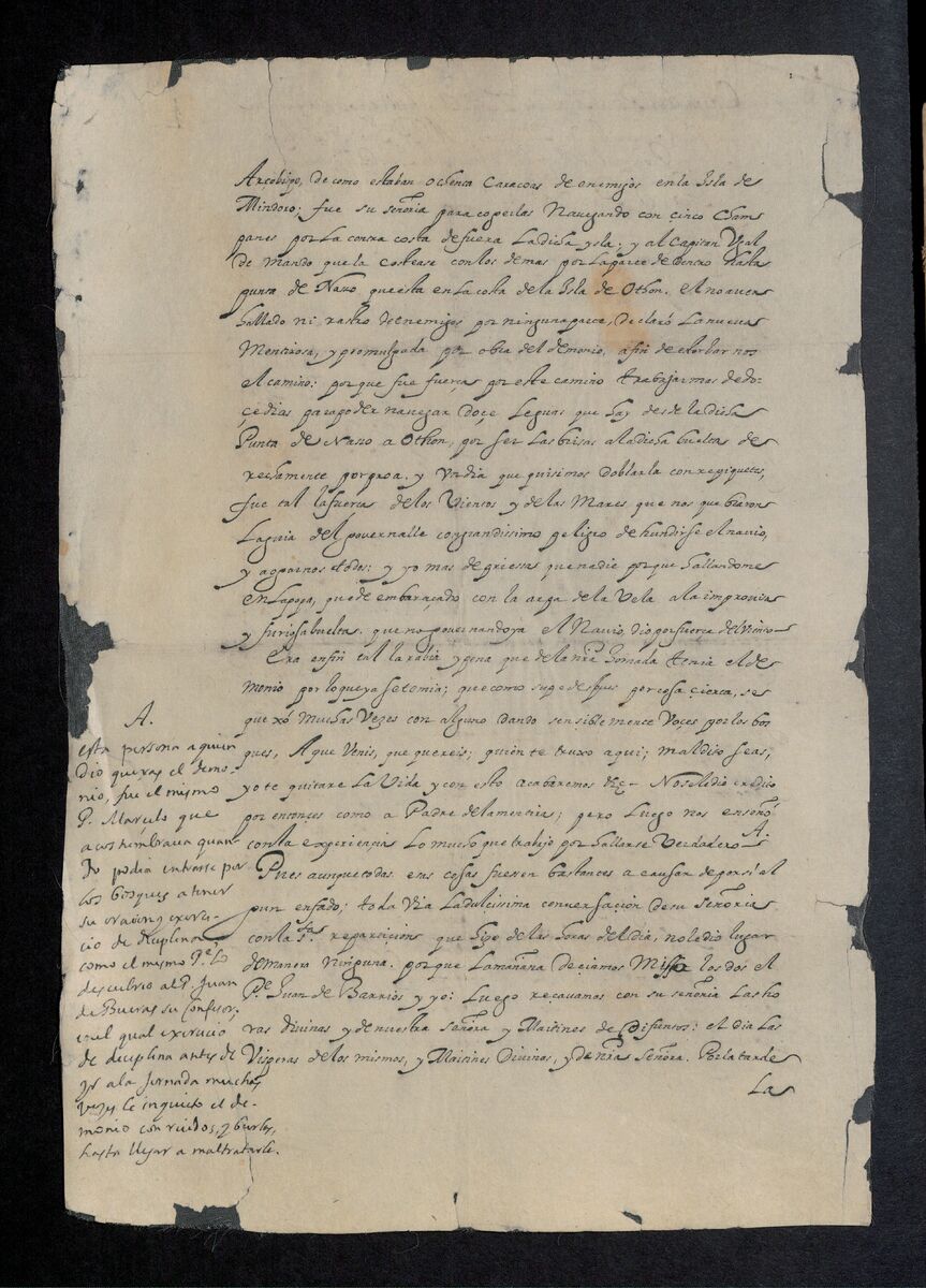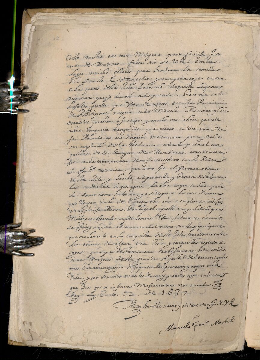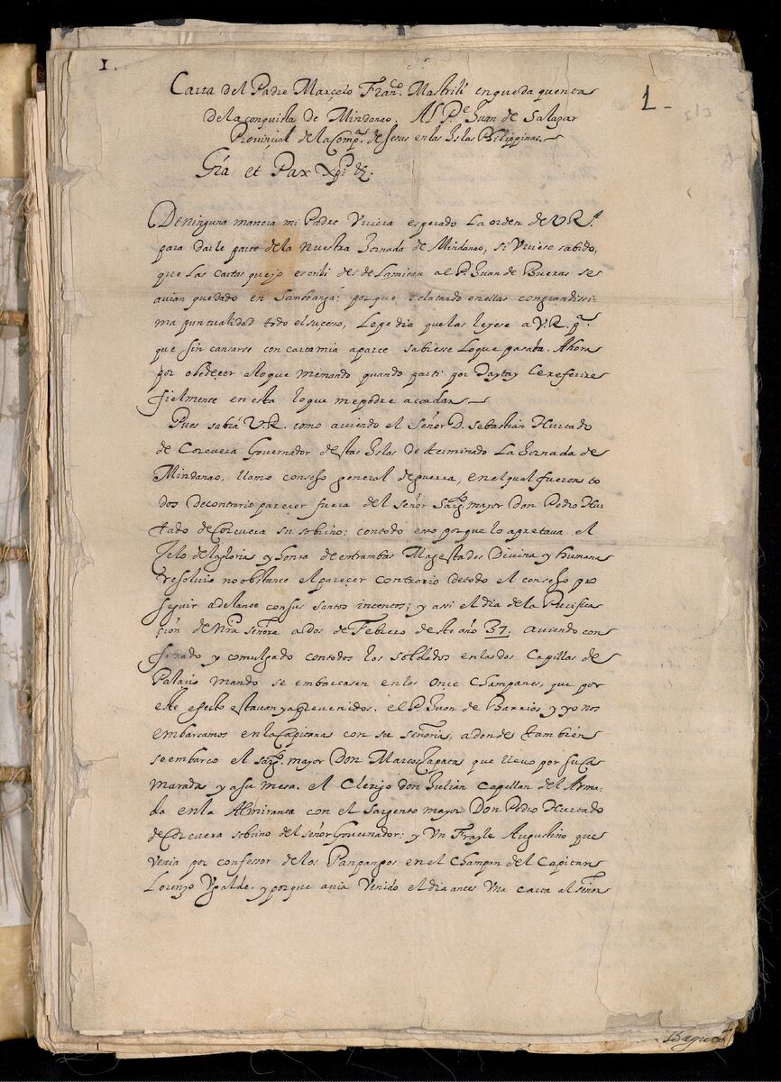 Carta del Padre Marcelo Francisco Mastrilli, sobre la conquista de Mindanao. Taytay, 1637