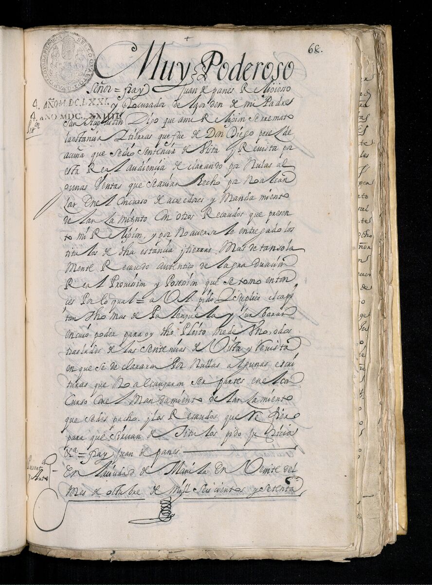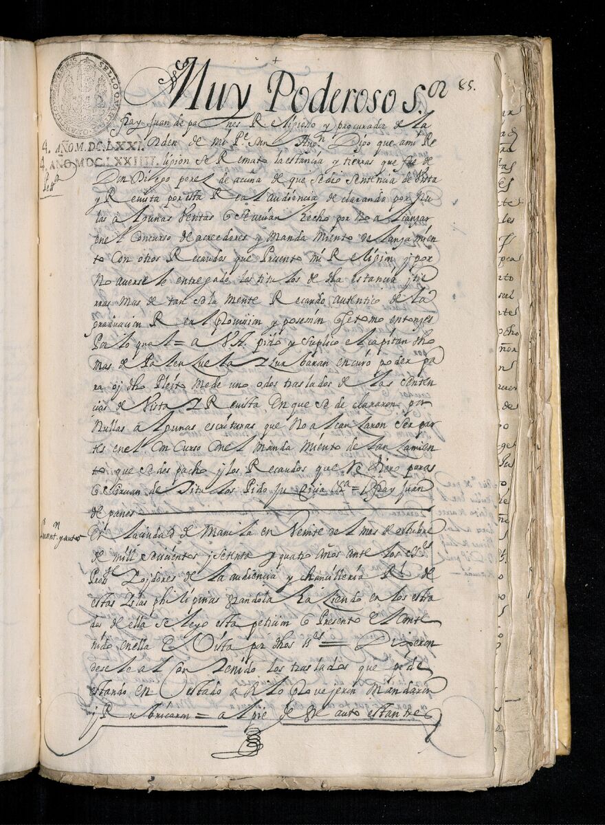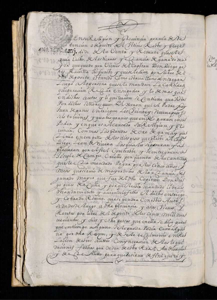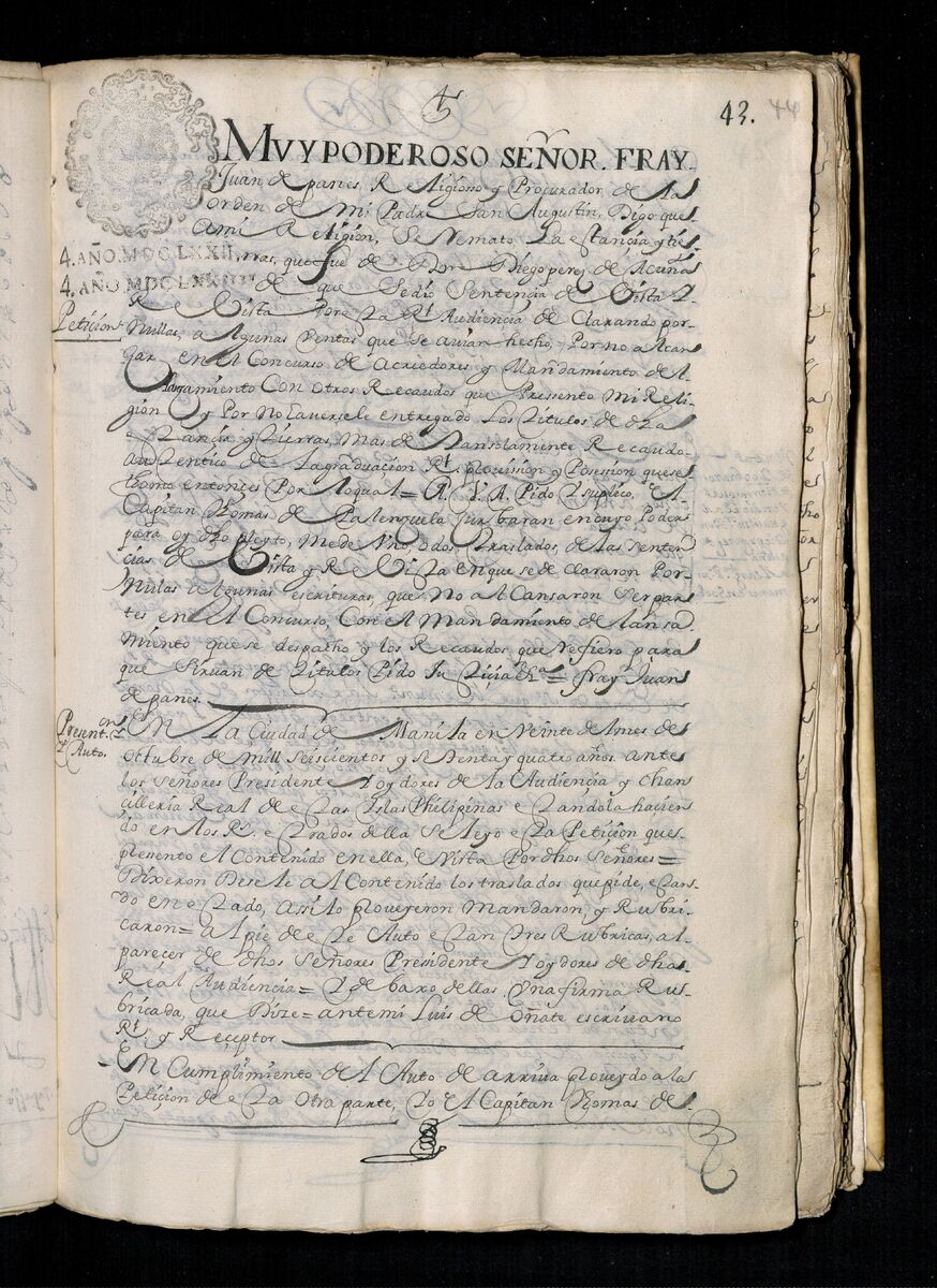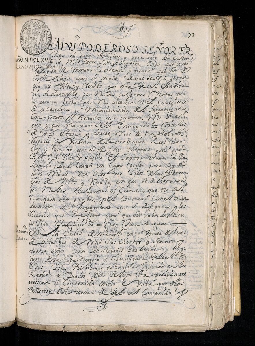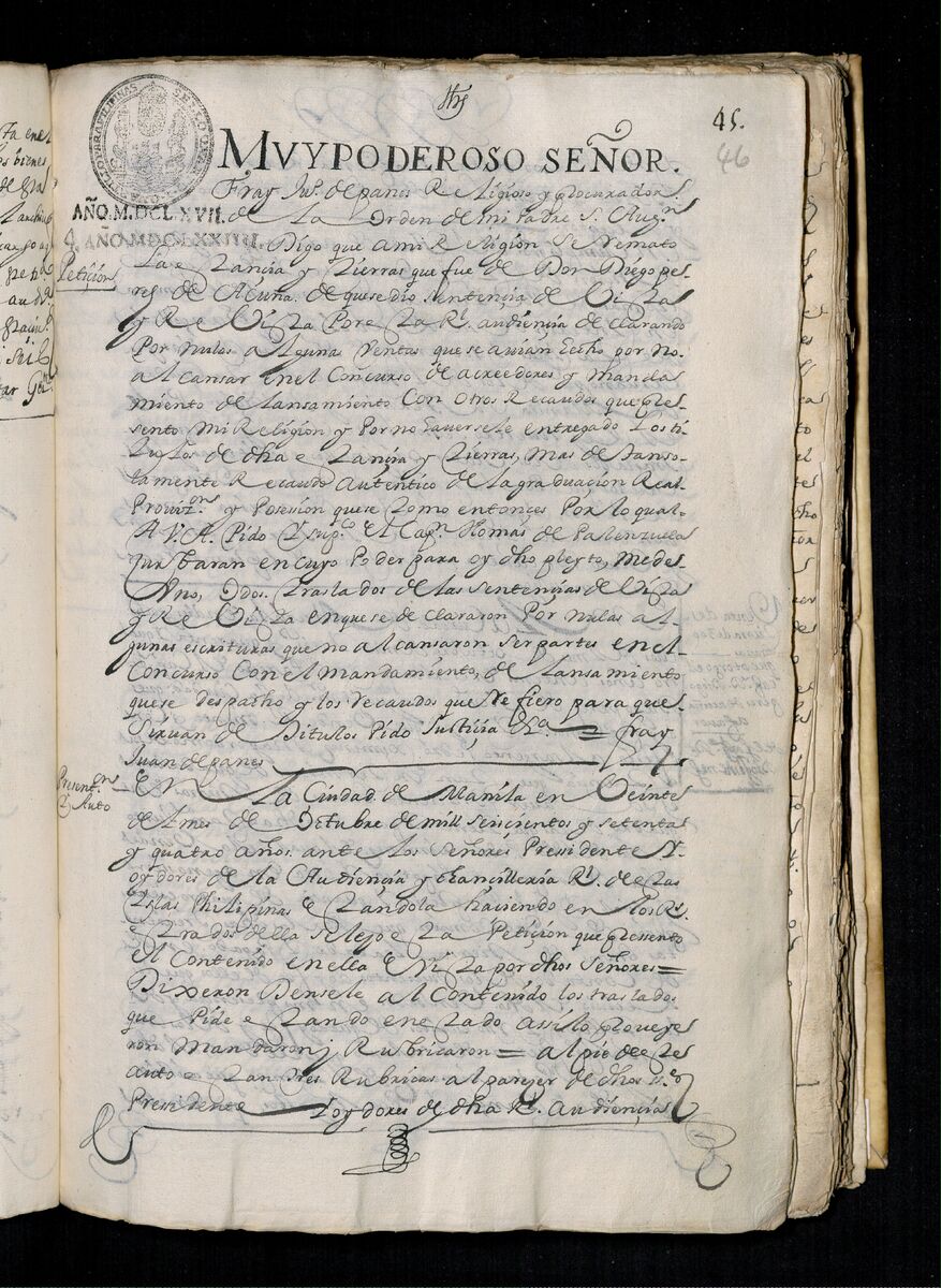 Fray Juan de Panes, Procurador General de la Provincia del Santísimo Nombre de Jesús pide que se les de los traslados de la estancia de Alcina. 1671.