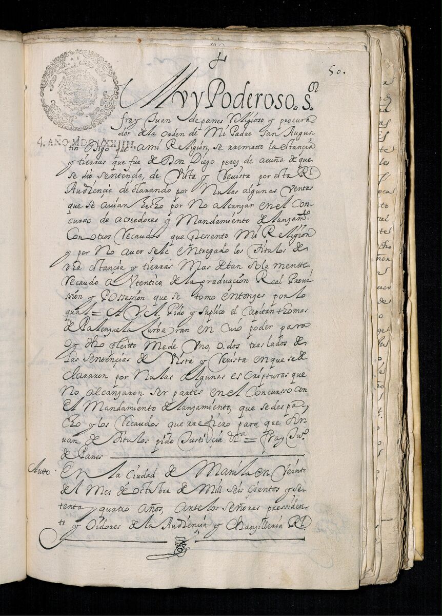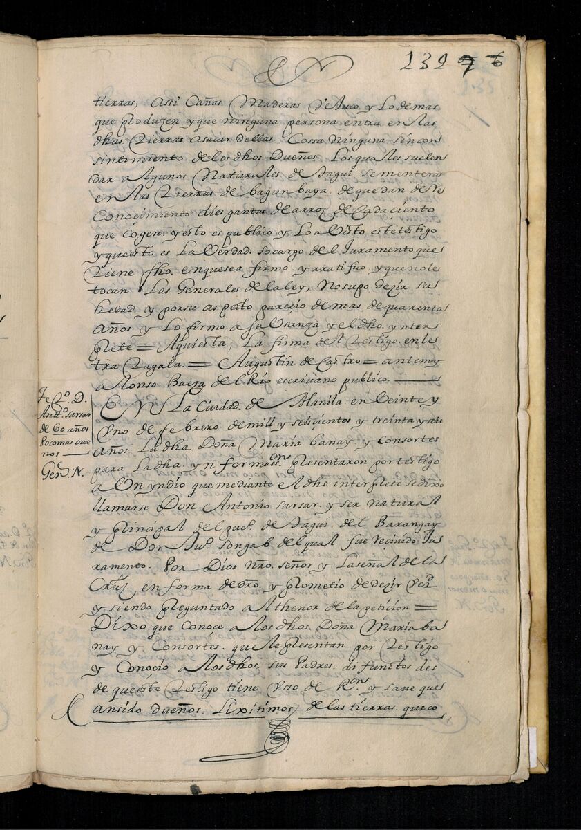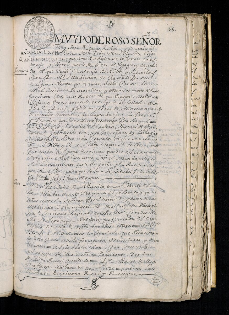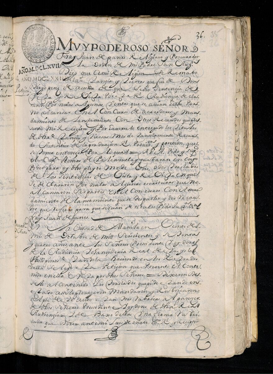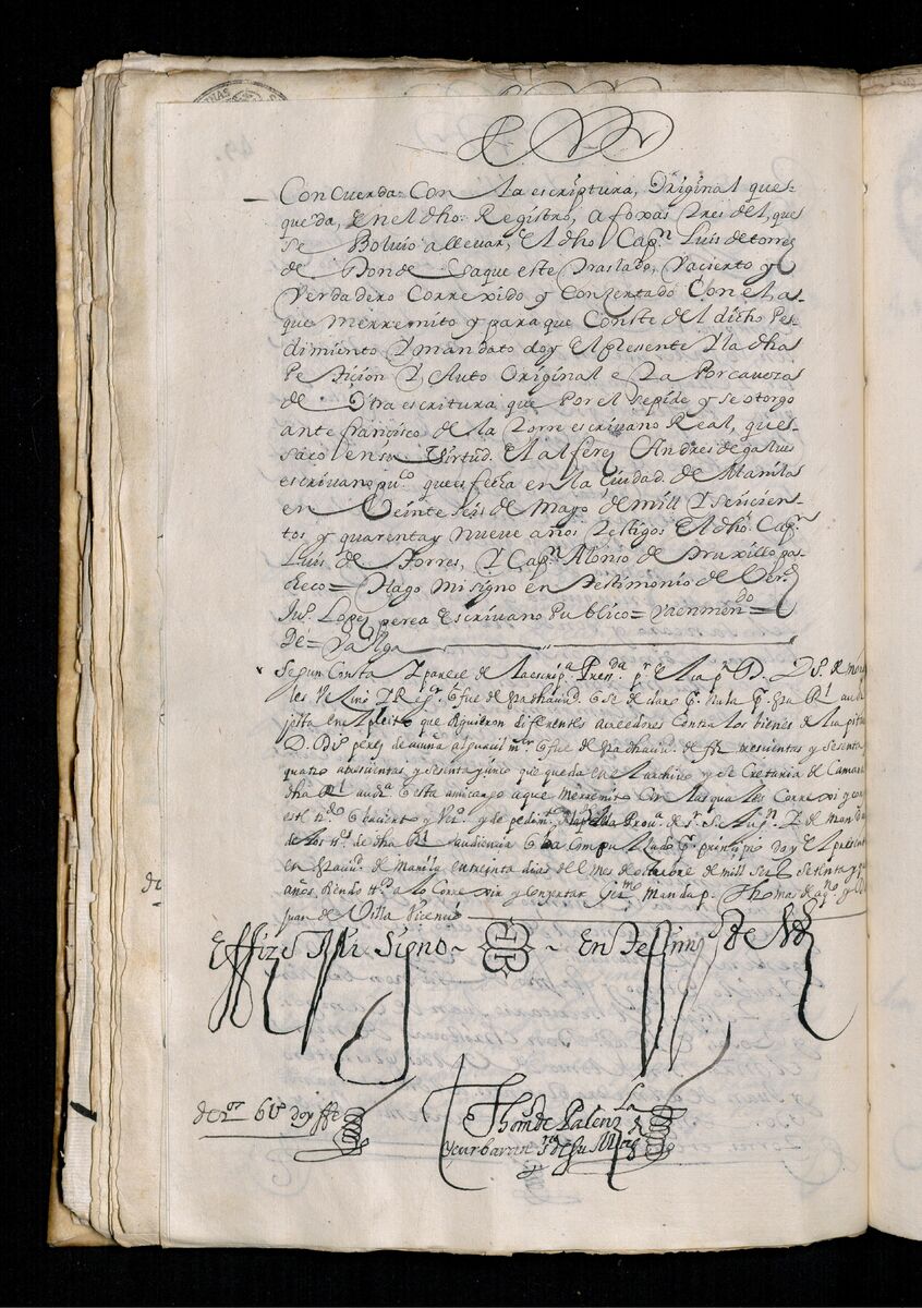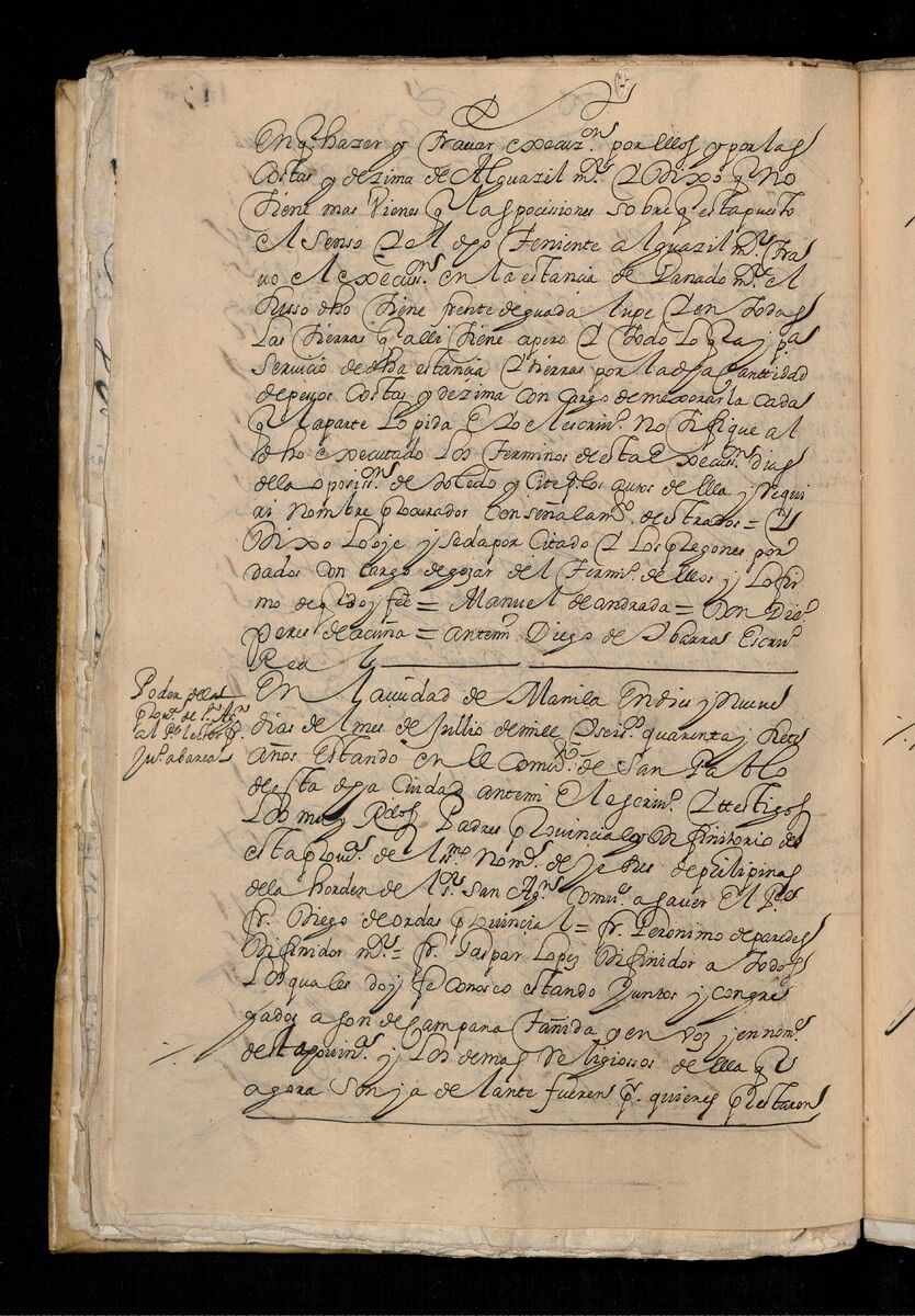 Escritura de venta otorgada por el Sargento Mayor Don Pedro Posada Pérez de una estancia que tiene en el Pueblo de Jaro (Iloilo) al Convento de San Agustín de Manila. 1723.